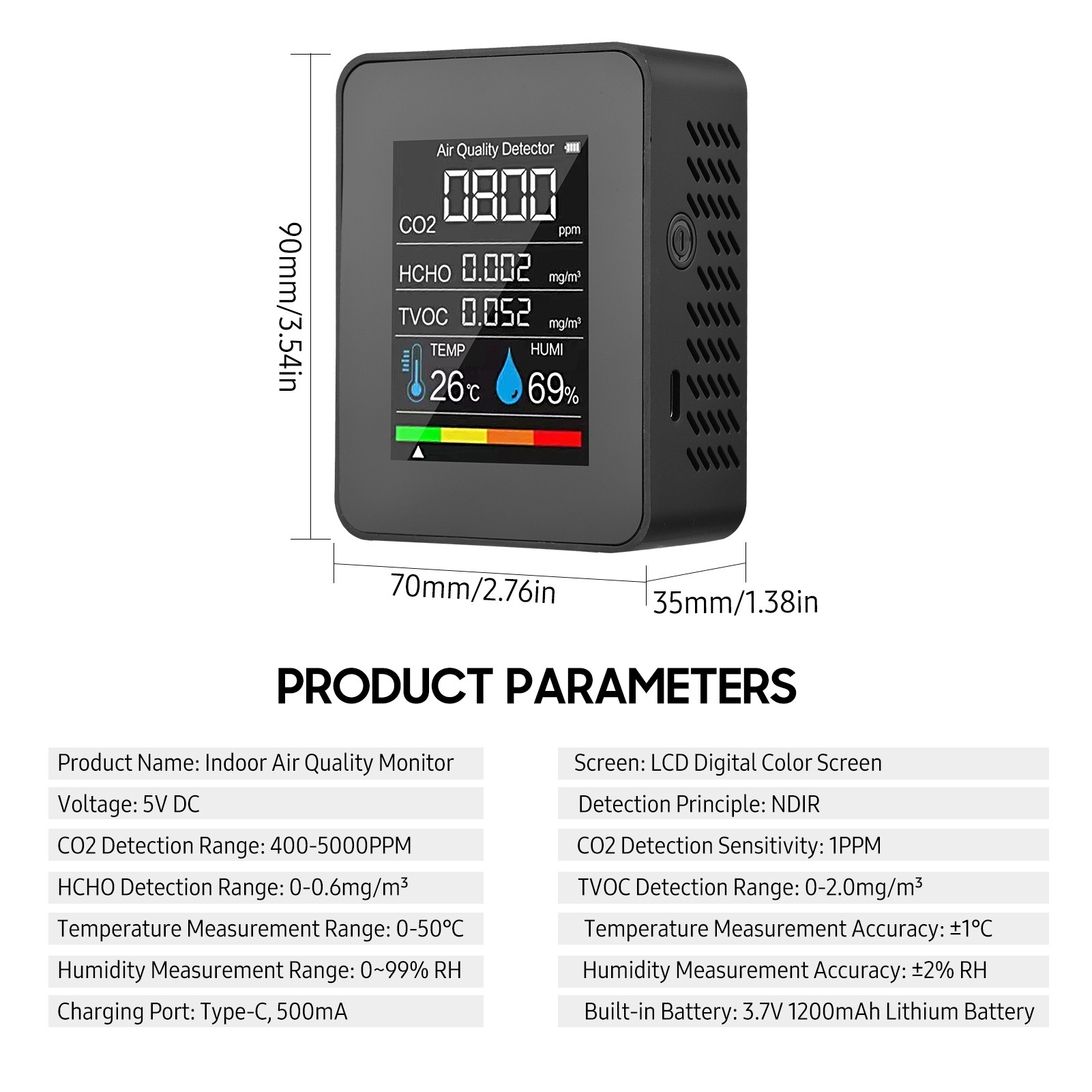 Детектор углекислого газа пять в одном, температура углекислого газа, влажность, формальдегид, количество TVOC можно согласовать, чтобы заставить