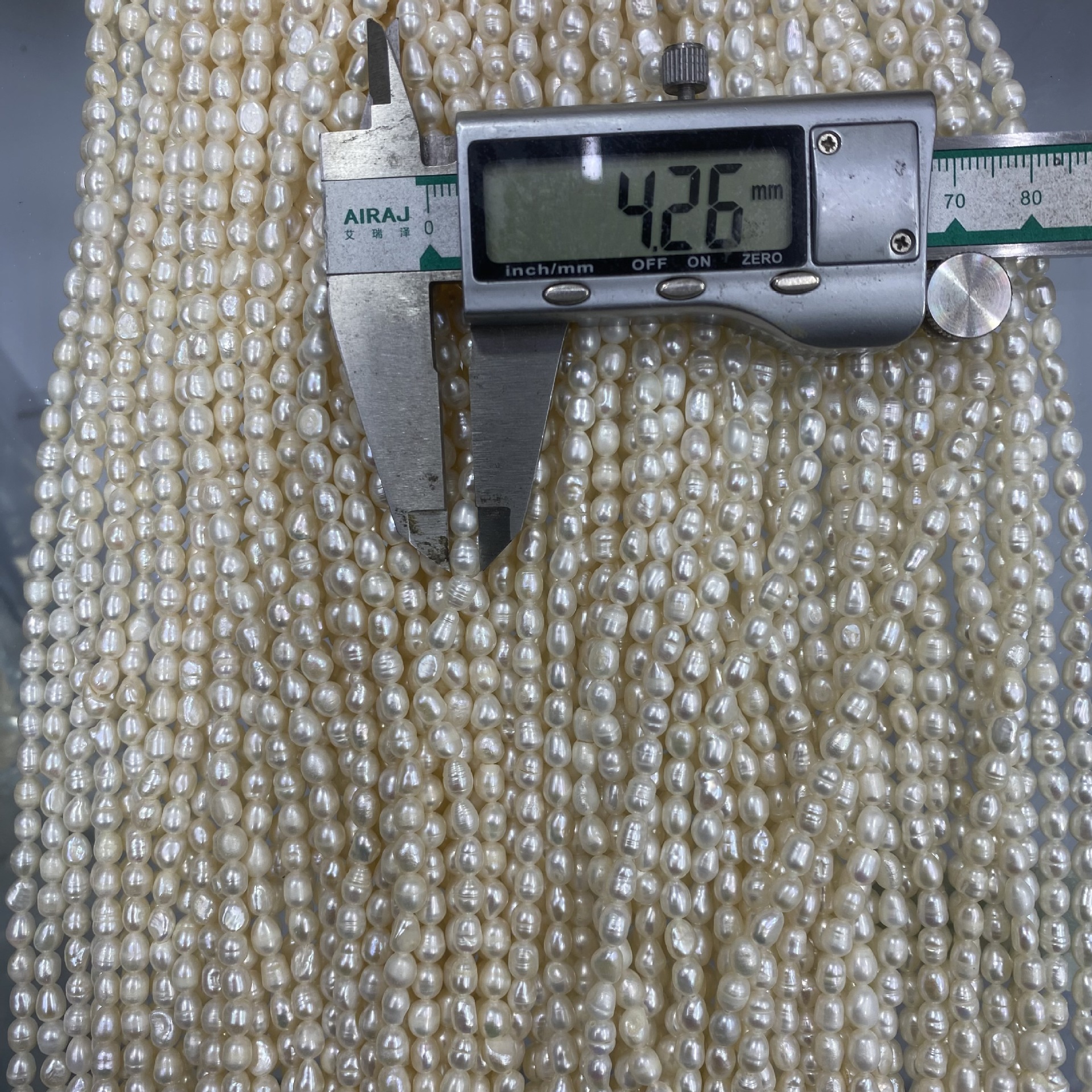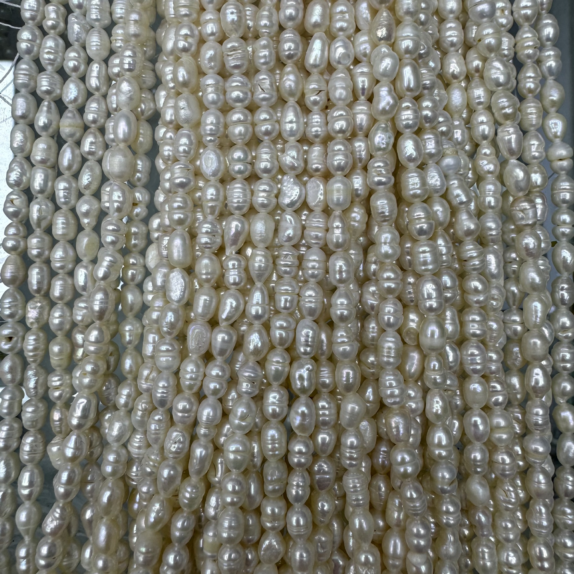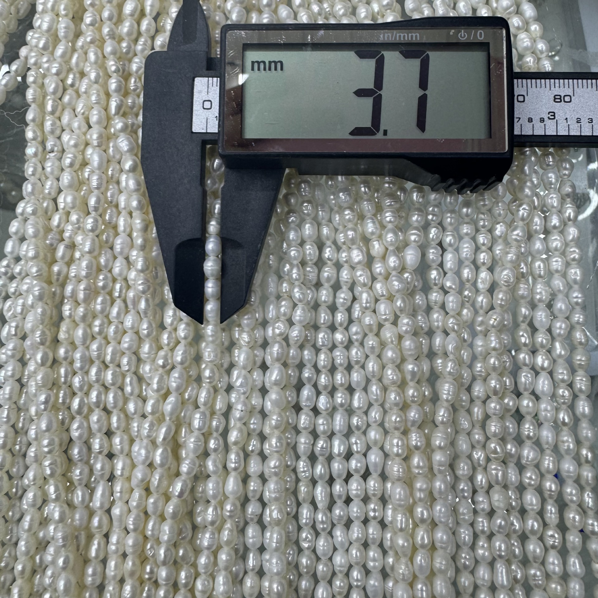 рисовые бусины диаметром 2 мм.; 3 ~ 4 мм с зерном; 3-4 мм, мелкозернистый, белый и яркий; 4~4,5 мм толстая нить, яркая; 4-5 мм тонкая нить; 4,5–5 мм текстурированная белая и яркая кожа без узоров; 4,5 ~ 5 чистых световых линий