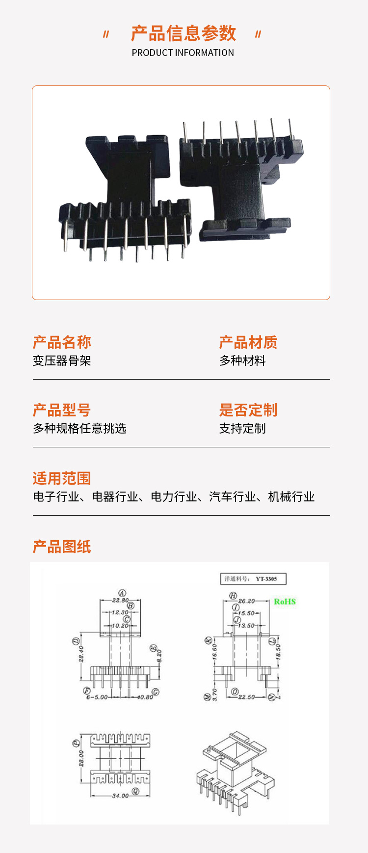 EI33 трансформаторный скелет EE33 высокочастотный скелет EI33 бакелитовый скелет вертикальный 7 + 7