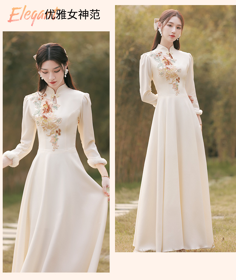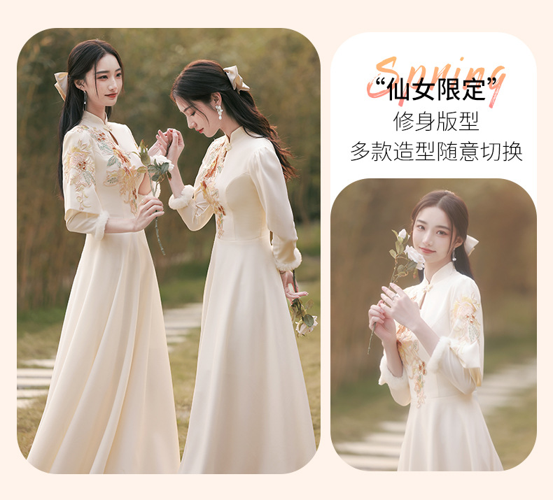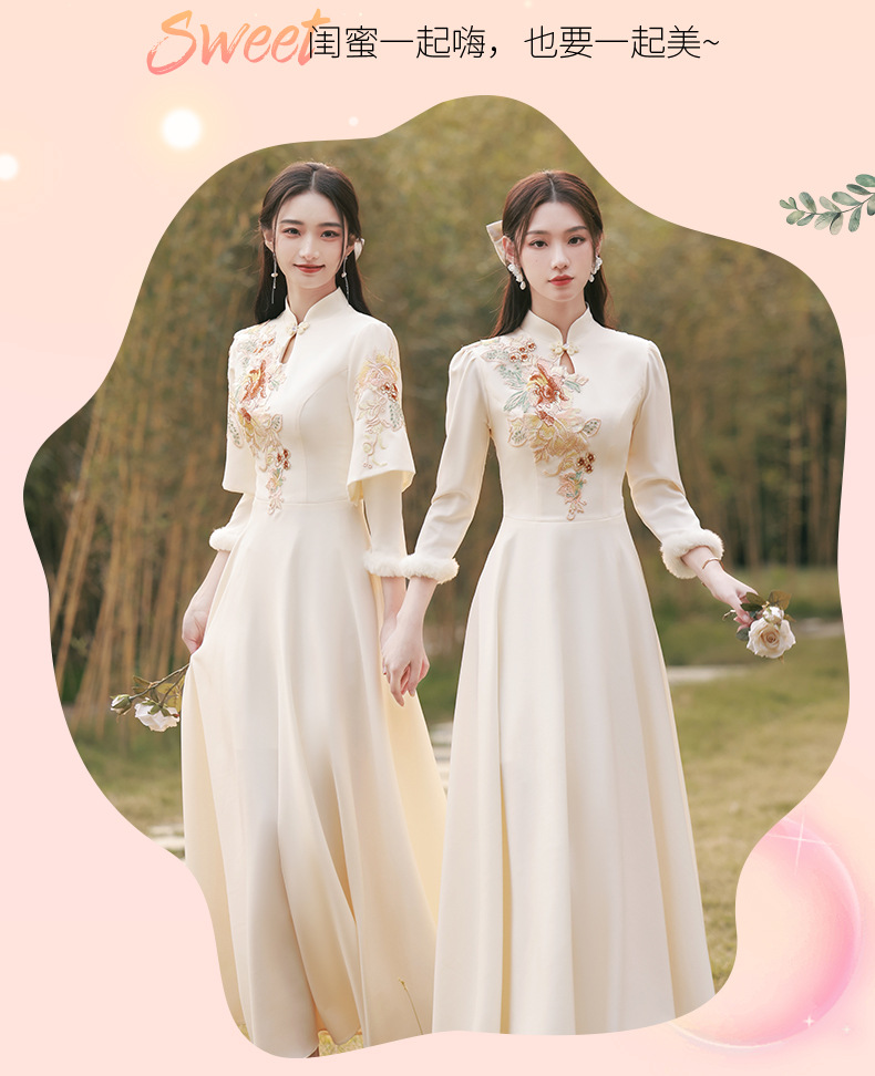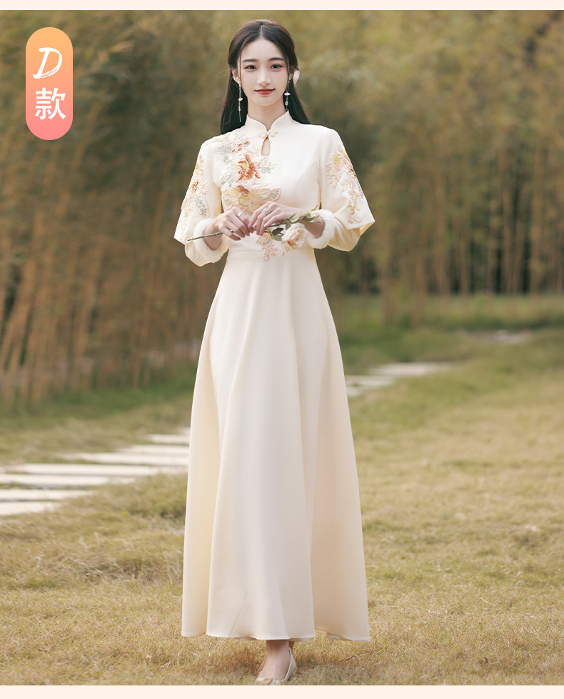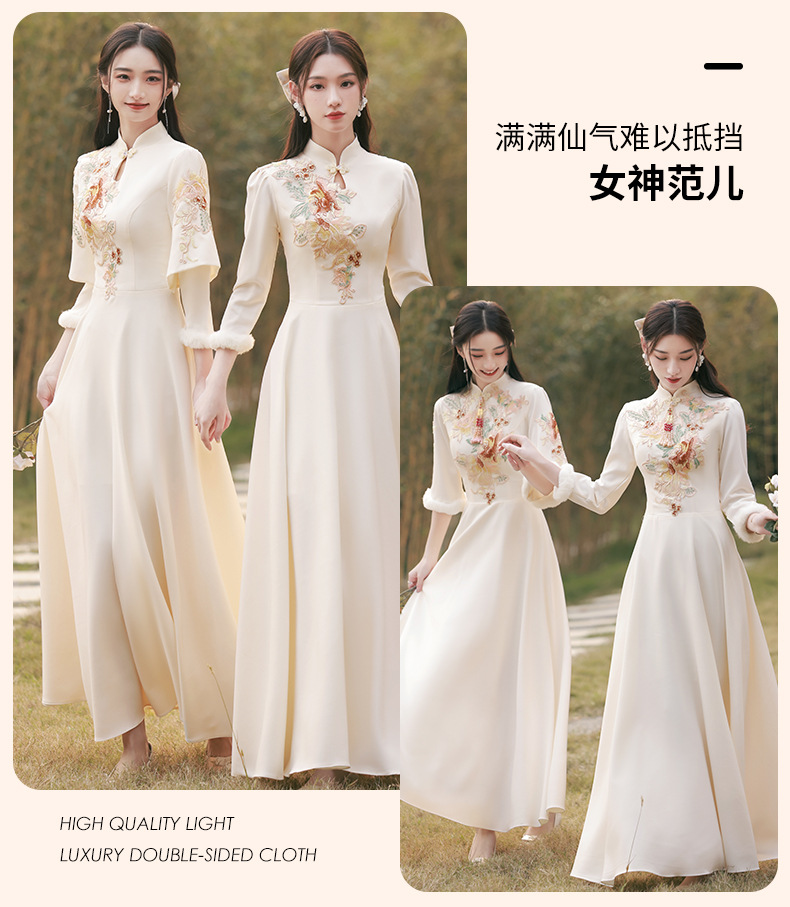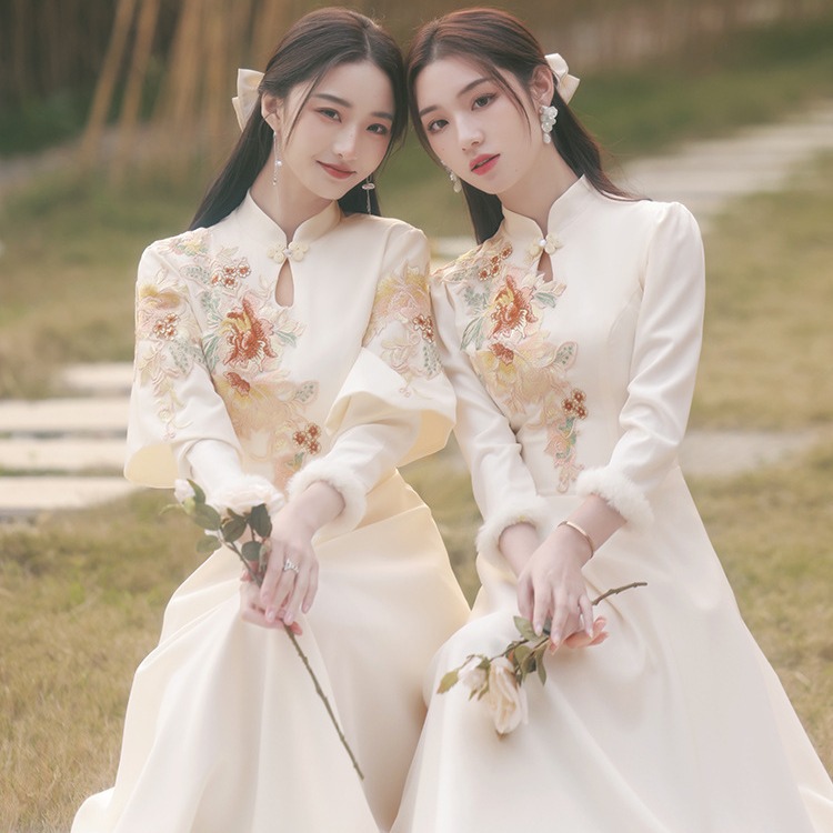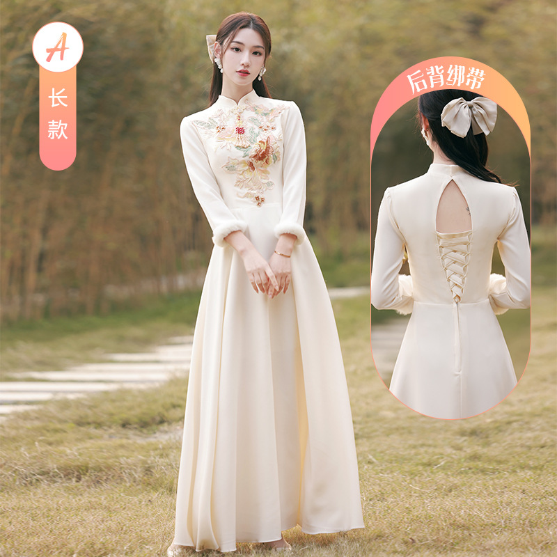 Шампанское цвет одежды для невесты летний китайский стиль чонсам 2024 новый сестринский темперамент платье женский утолщенный теплый длинный рукав