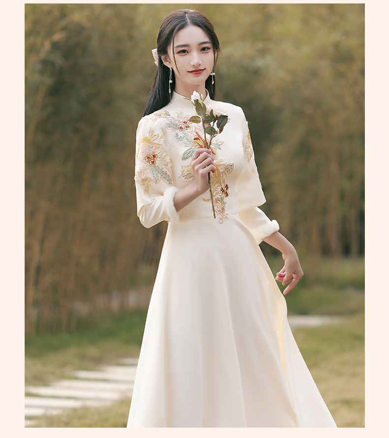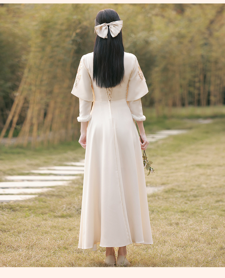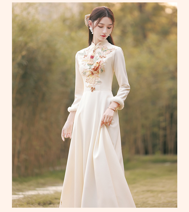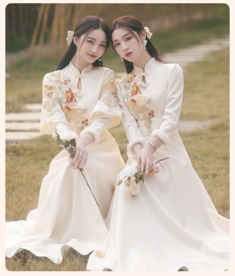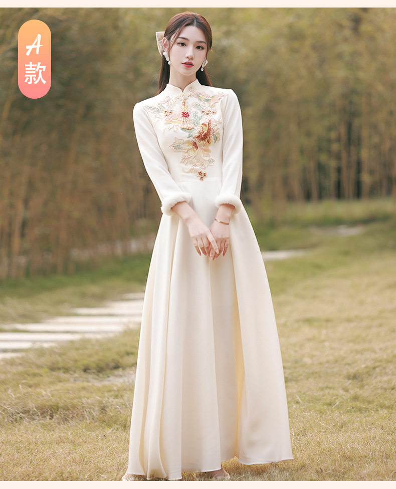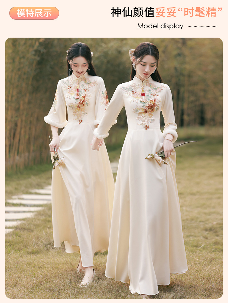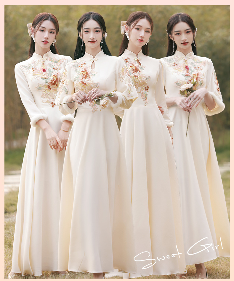 Шампанское цвет одежды для невесты летний китайский стиль чонсам 2024 новый сестринский темперамент платье женский утолщенный теплый длинный рукав