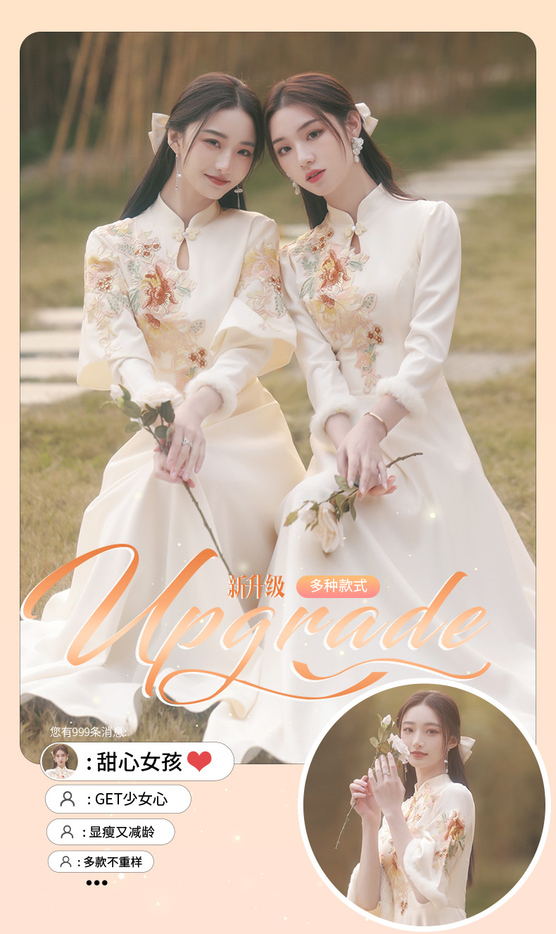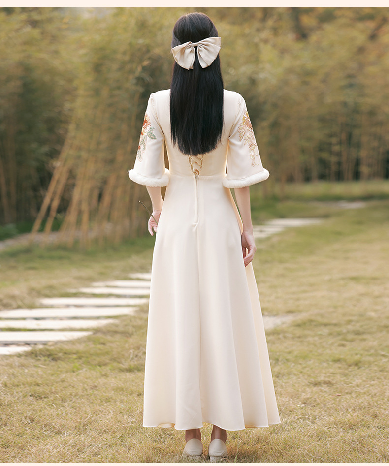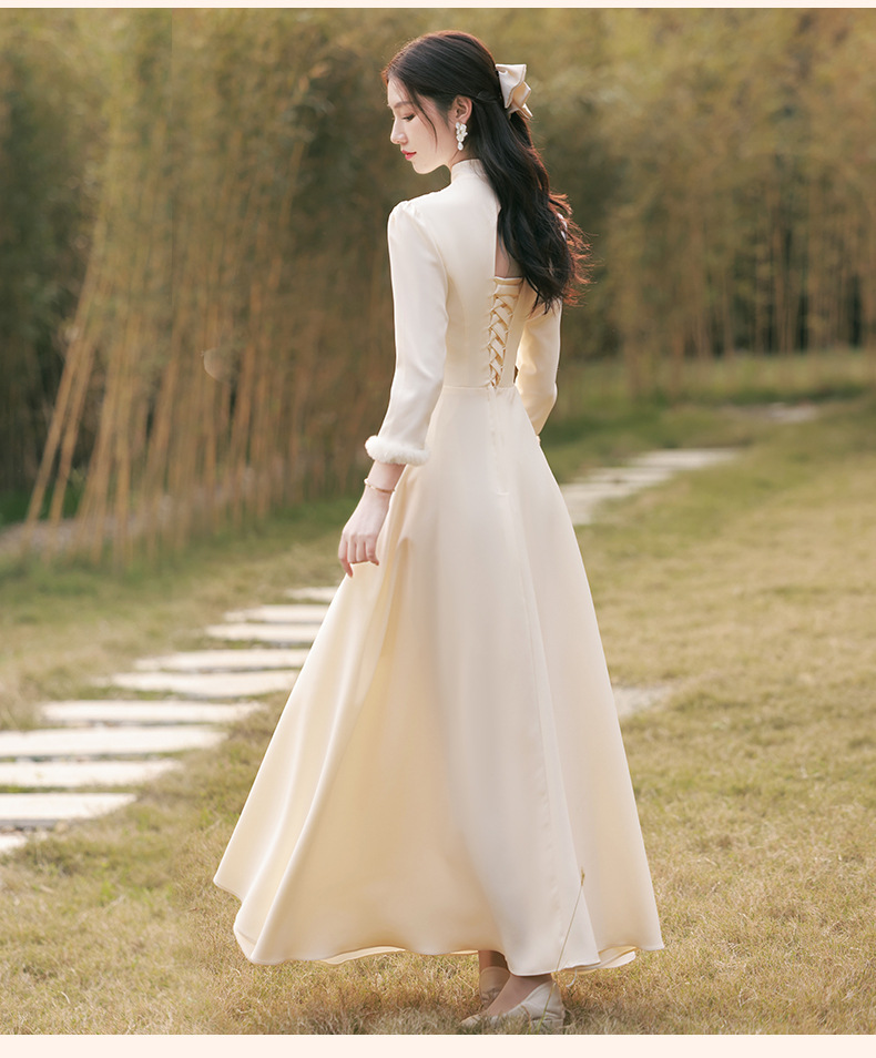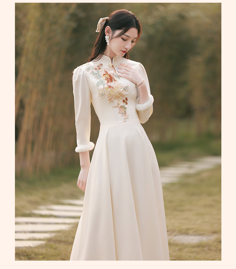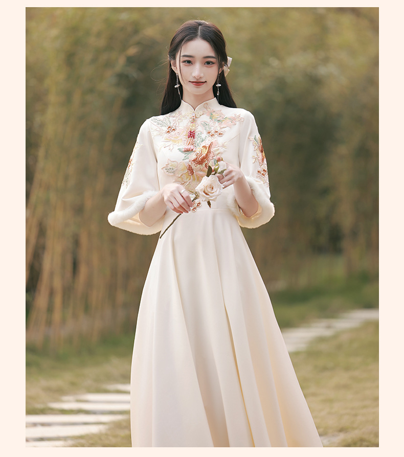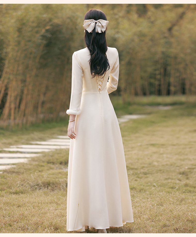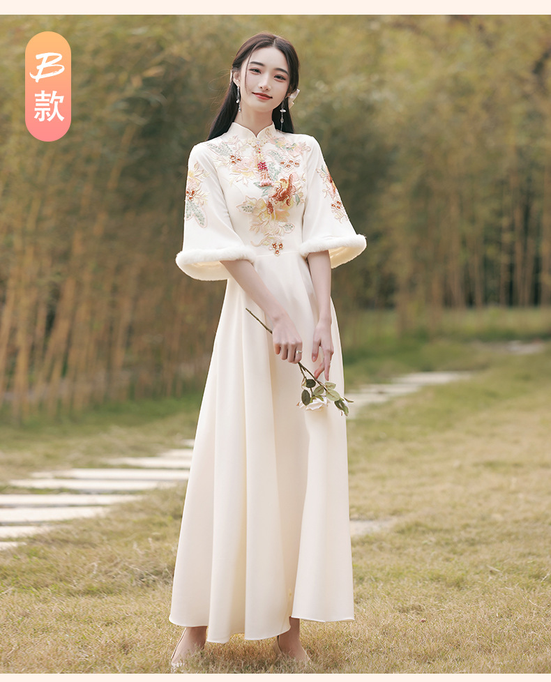 Шампанское цвет одежды для невесты летний китайский стиль чонсам 2024 новый сестринский темперамент платье женский утолщенный теплый длинный рукав
