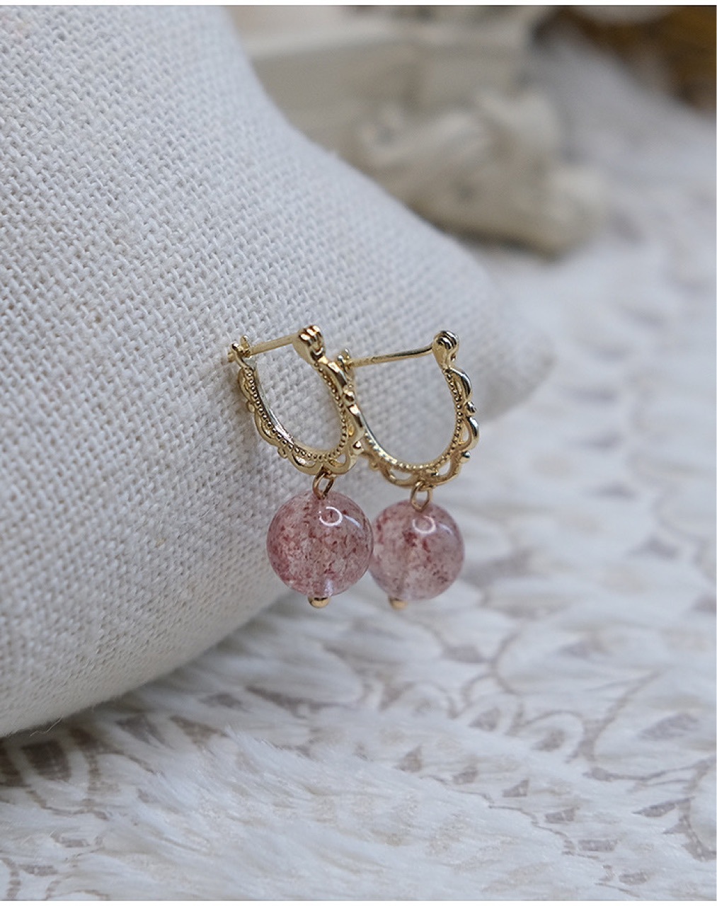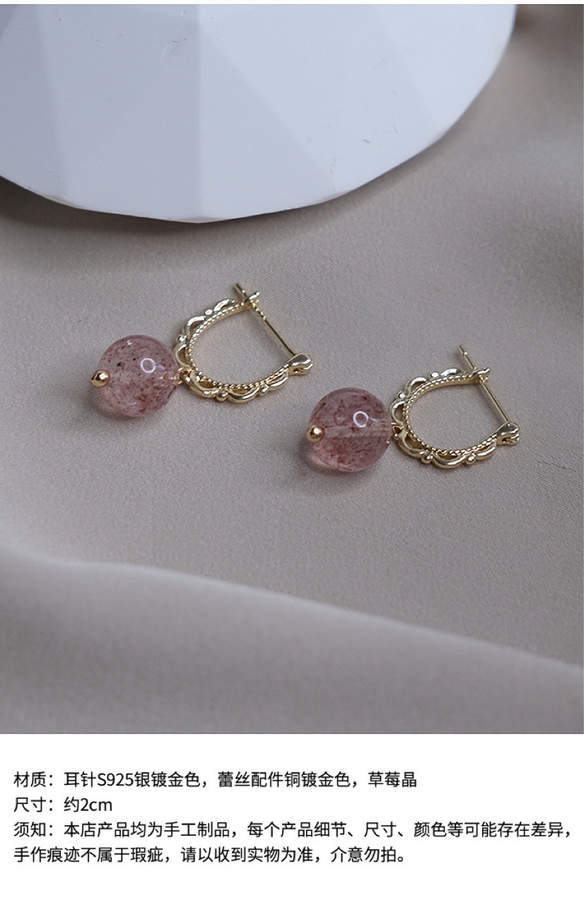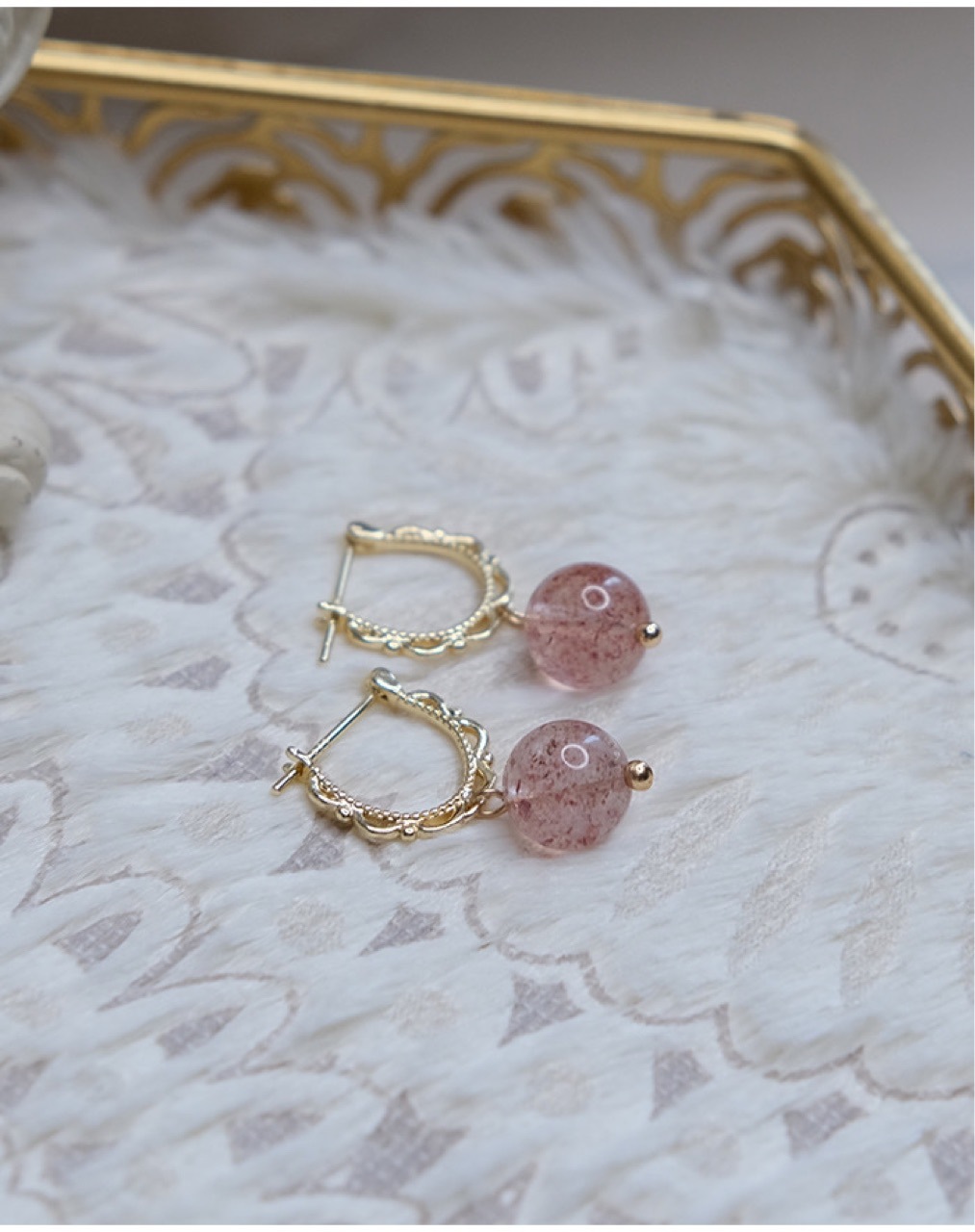 Серьги с натуральными кристаллами клубники, кружевная Пряжка для ушей, 925 серебряные иглы, серьги для милых девушек, женские элегантные серьги