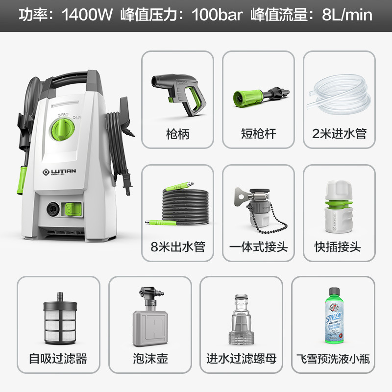 Lvtian Мойка автомобиля высокого давления Портативный насос для автомойки Бытовой 1400 Вт Водяной пистолет Чистящая машина Автомобильная щетка Артефакт Маленький монстр