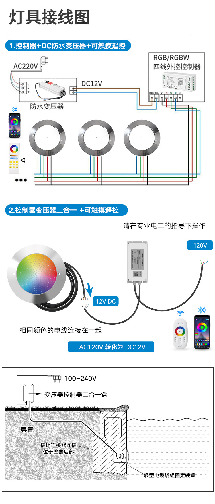 Теплый белый (лампы); Чистый белый (лампы); Красочные огни (только лампы); Контроллер граффити приложения + пульт дистанционного управления; Блок управления лампой лотоса приложения (включая функцию трансформатора); Контроллер света Baolian APP + пульт дистанционного управления