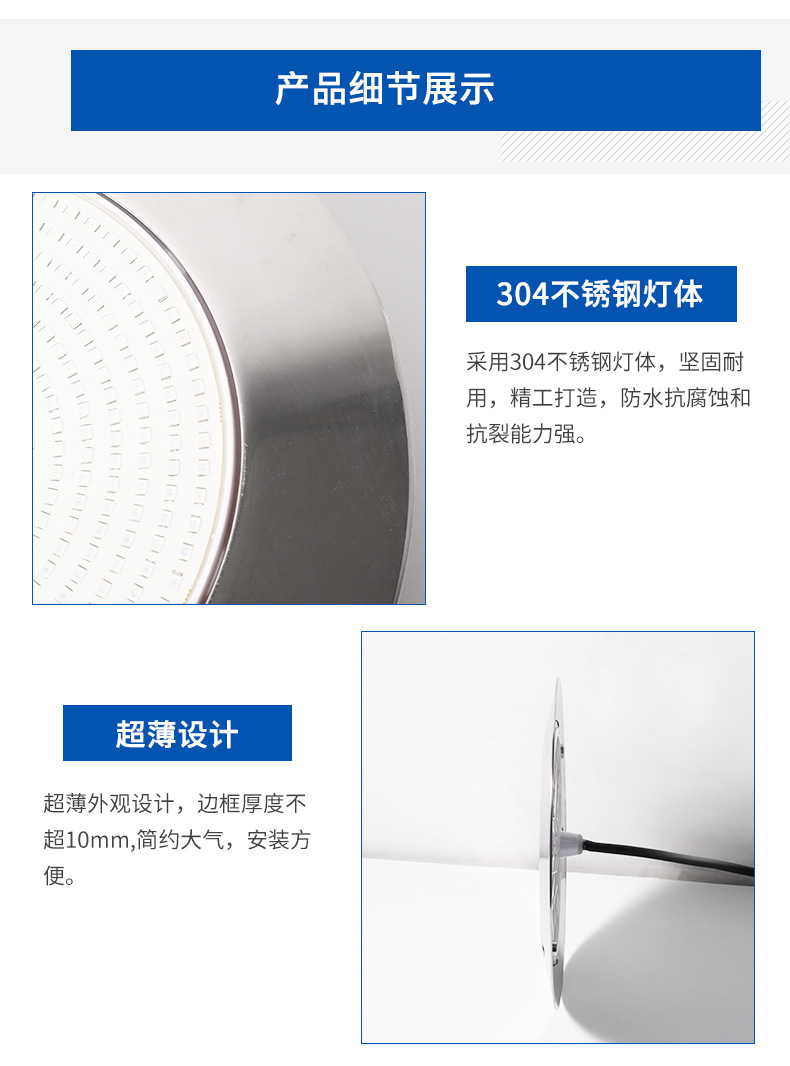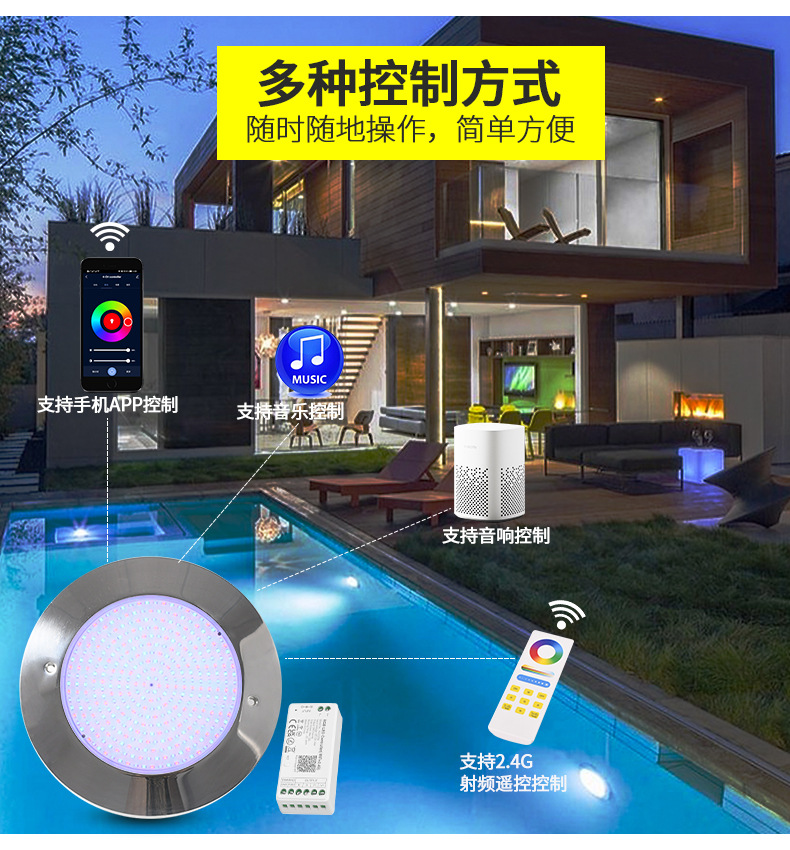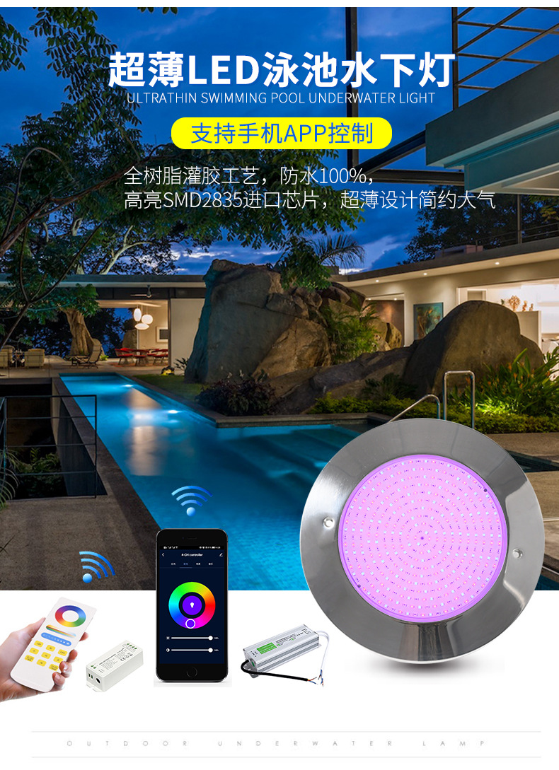 Трансграничный светильник для бассейна из нержавеющей стали IP68 водонепроницаемый ультратонкий настенный подводный свет умное приложение с полным наполнением клеем подводный свет