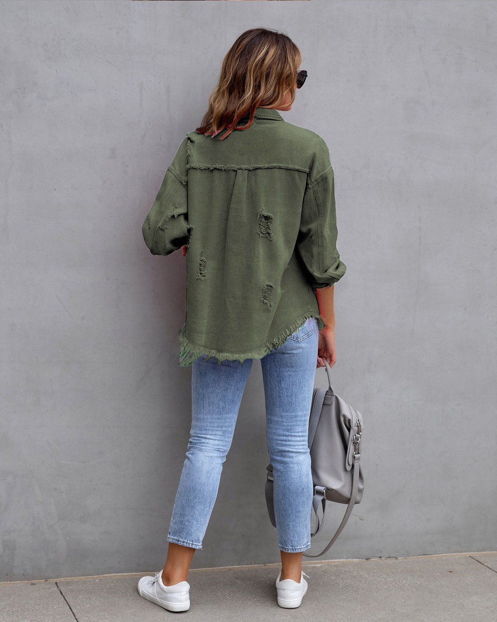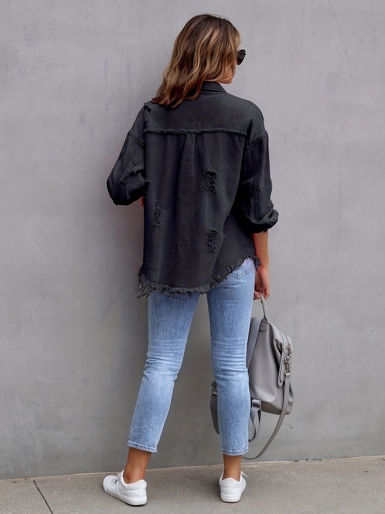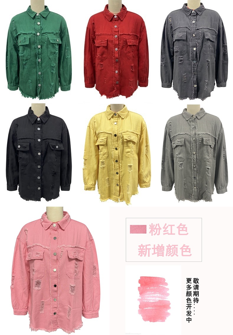 Трансграничные новые европейские и американские джинсовые куртки женские сплошные свободные куртки дыры с длинными рукавами женские джинсовые рубашки Взрыв