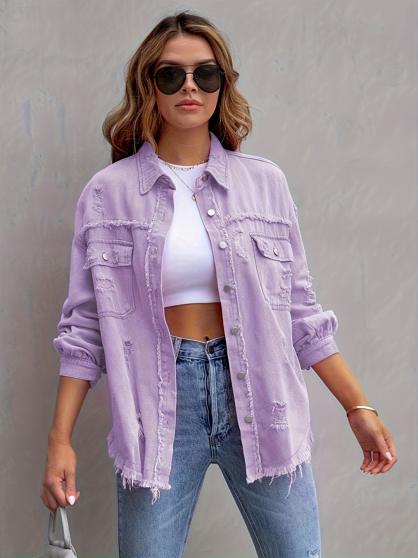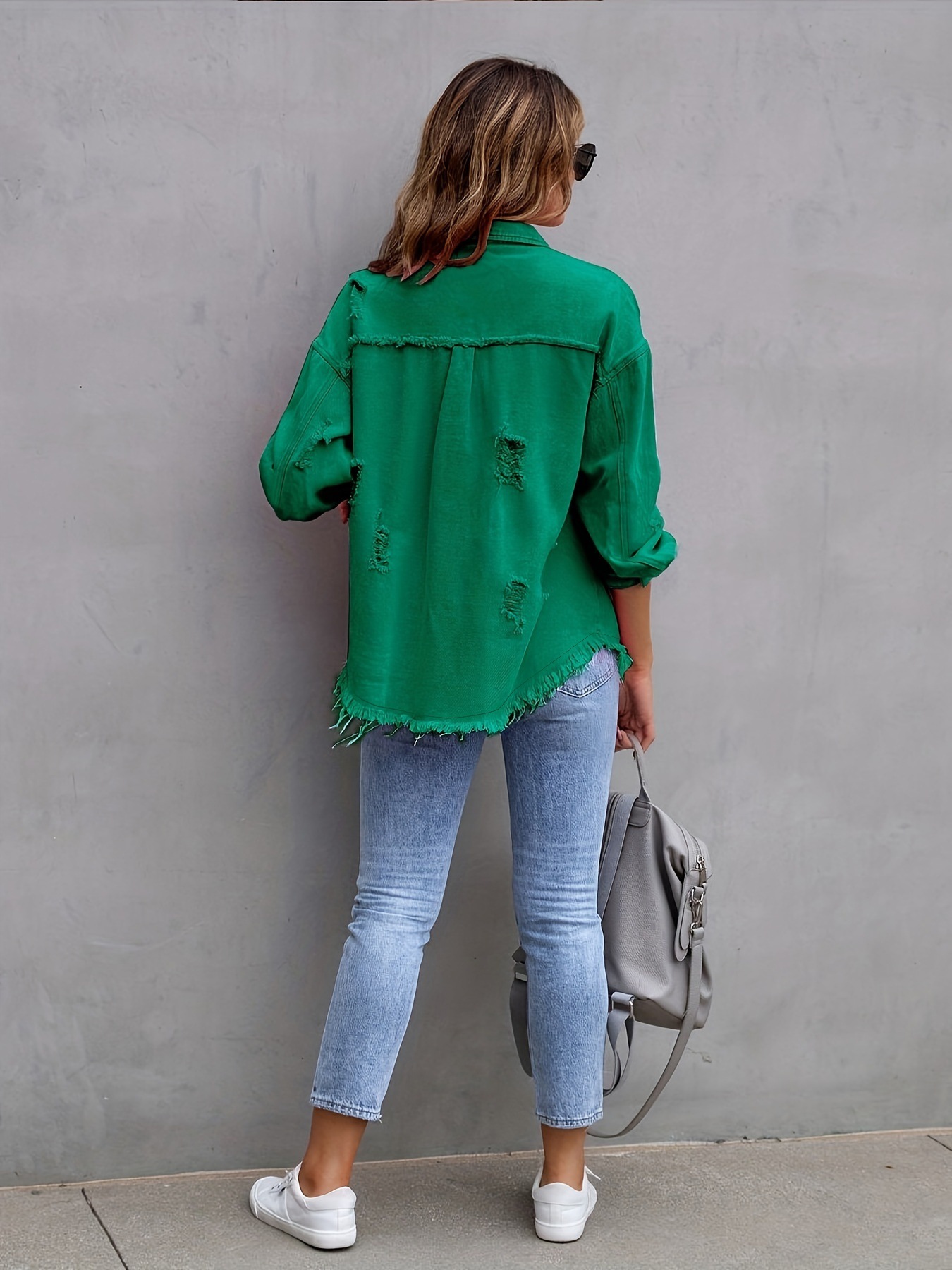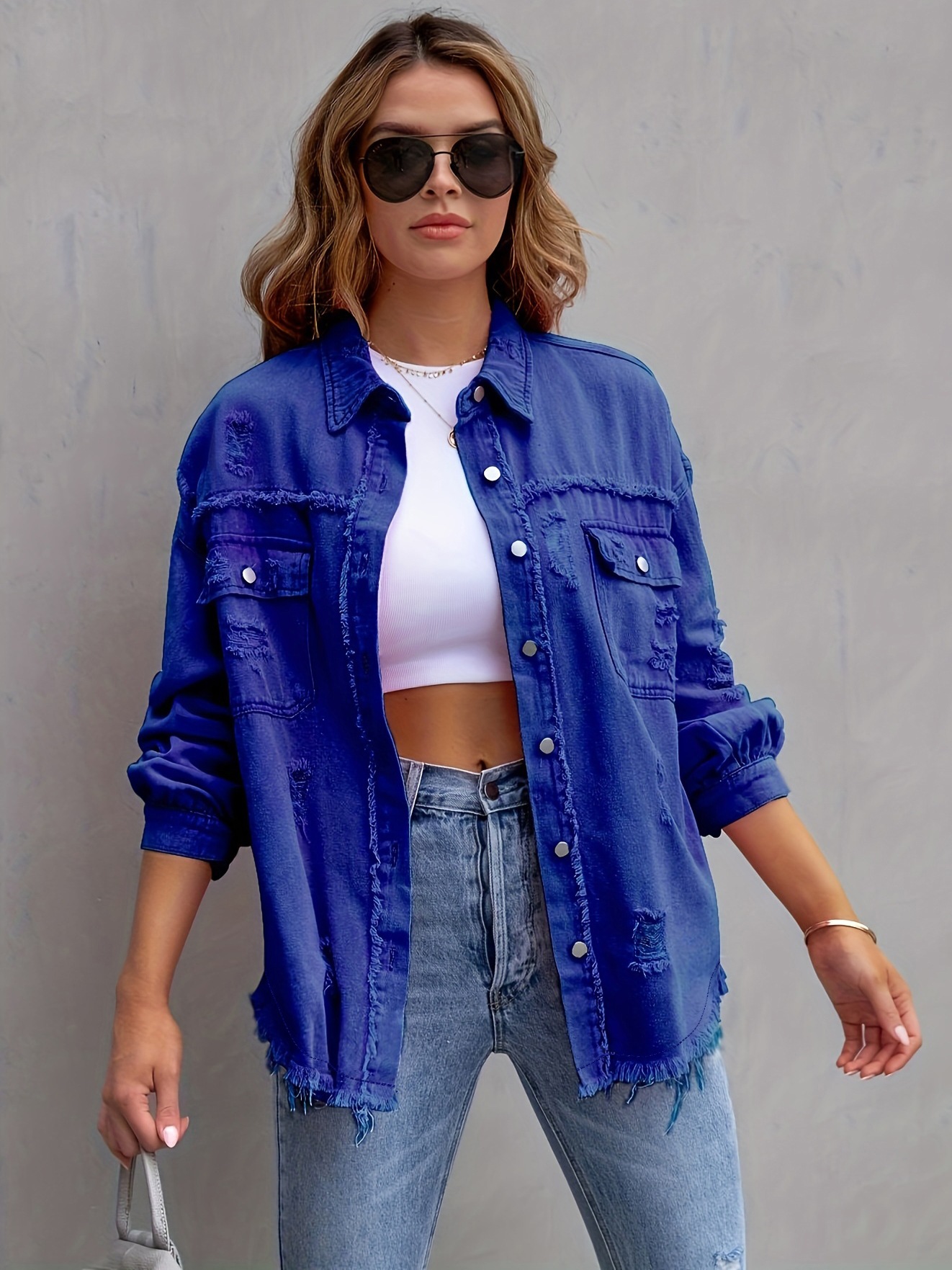 Трансграничные новые европейские и американские джинсовые куртки женские сплошные свободные куртки дыры с длинными рукавами женские джинсовые рубашки Взрыв
