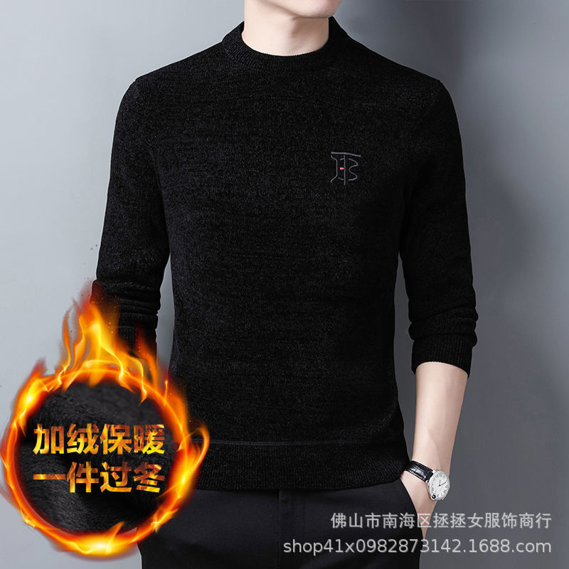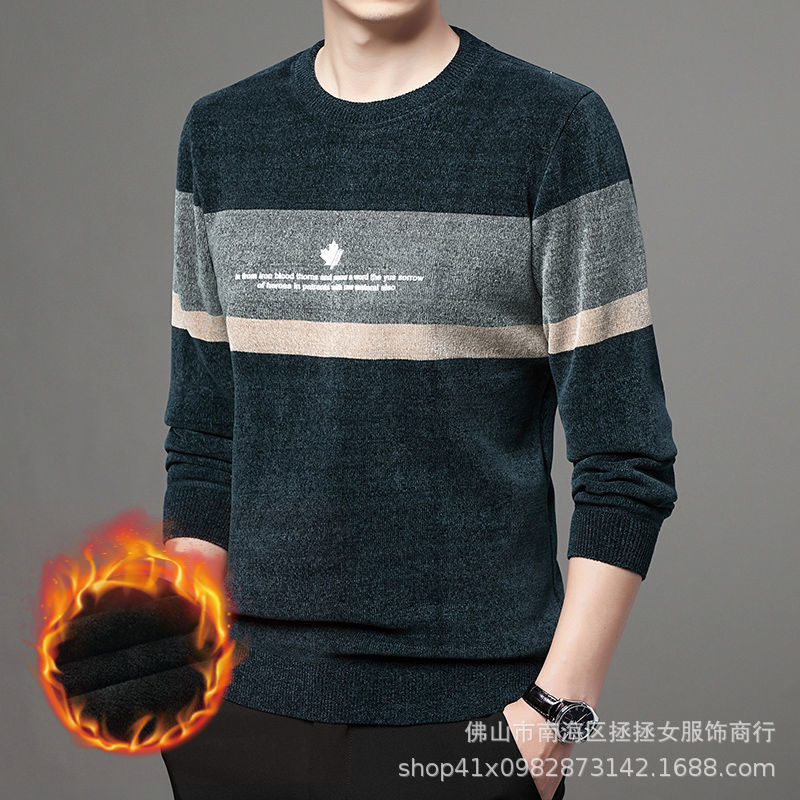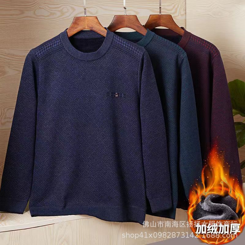 Мужской флисовый свитер для экспорта, осенне-зимний стиль, для мужчин среднего и старшего возраста, шерстяной свитер на флисовой подкладке, утолщенный