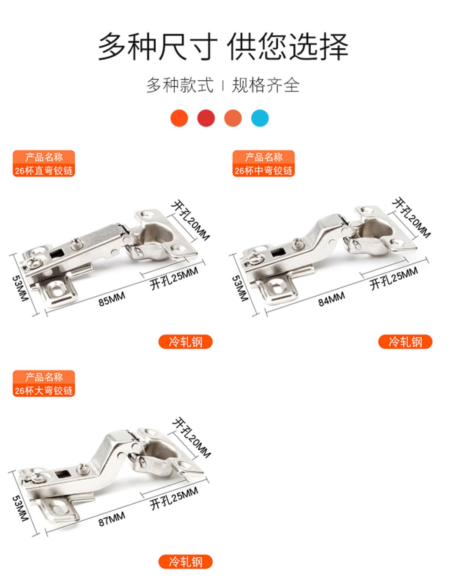 26杯绞链静音阻尼普通出口迷你冷轧钢大弯薄板浅杯26杯小铰链