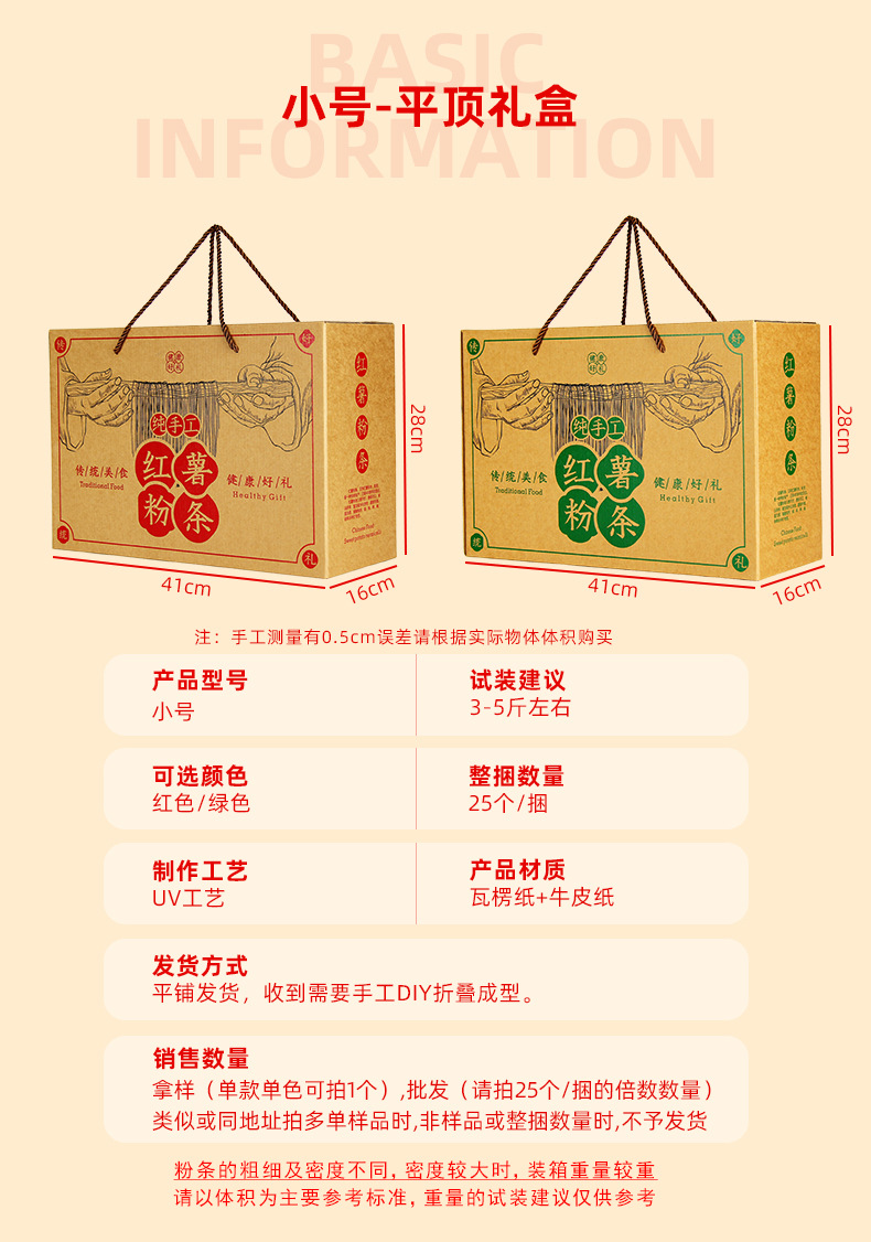 Коробка для вермичелли из сладкого картофеля, небольшой размер 41*16*28