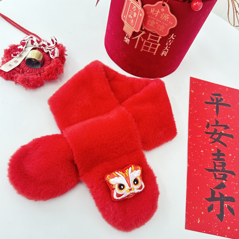 Новогодний красный детский плюшевый шарф, утепленный, из искусственного кроличьего меха, для мальчиков и девочек, зимний праздничный шарф-грелка для шеи