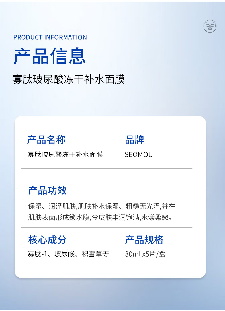 SEOMOU Олигопептидная замороженная увлажняющая маска с гиалуроновой кислотой