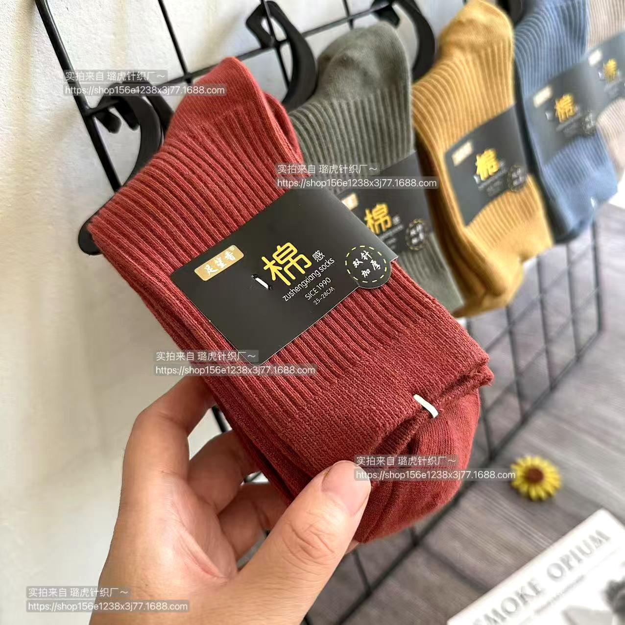 Высококачественные мужские носки из синьцзянского хлопка, осенне-зимние носки средней длины, антибактериальные, влагопоглощающие, однотонные, теплые длинные носки оптом