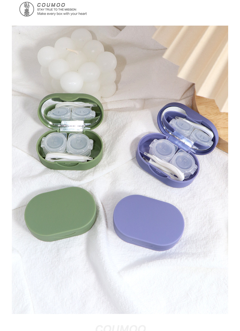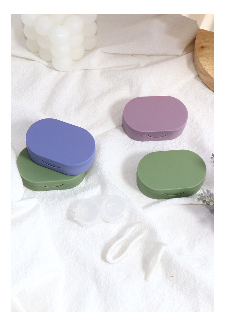 Футляр для контактных линз, чистая цветная силиконовая поверхность, приятный на ощупь, коробка для ухода за контактными линзами, ящик для хранения, крышка с пряжкой, доступны 3 цвета, оптовая продажа