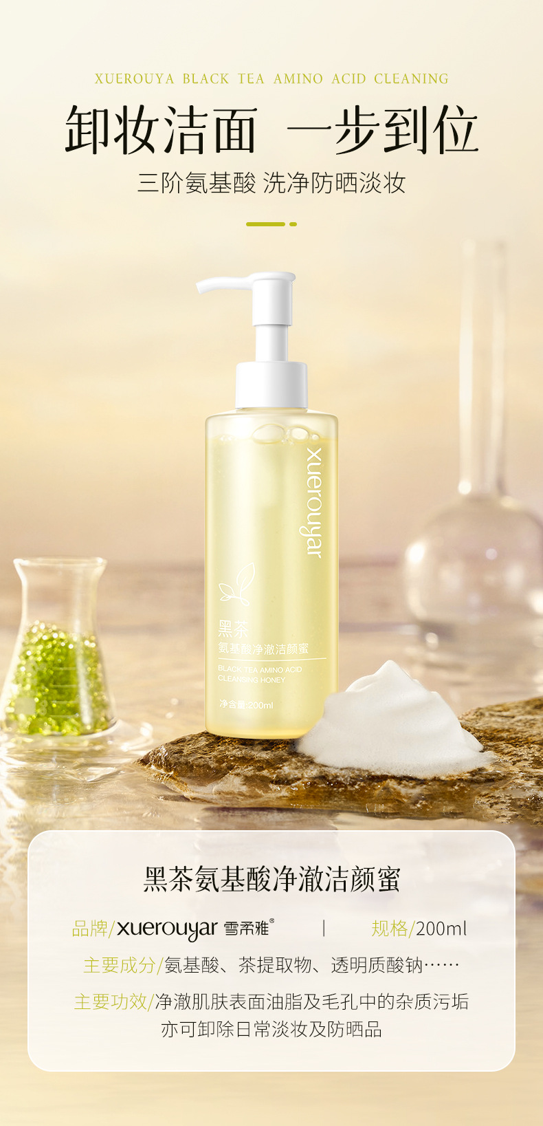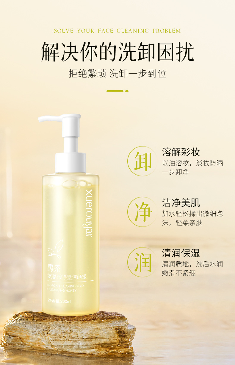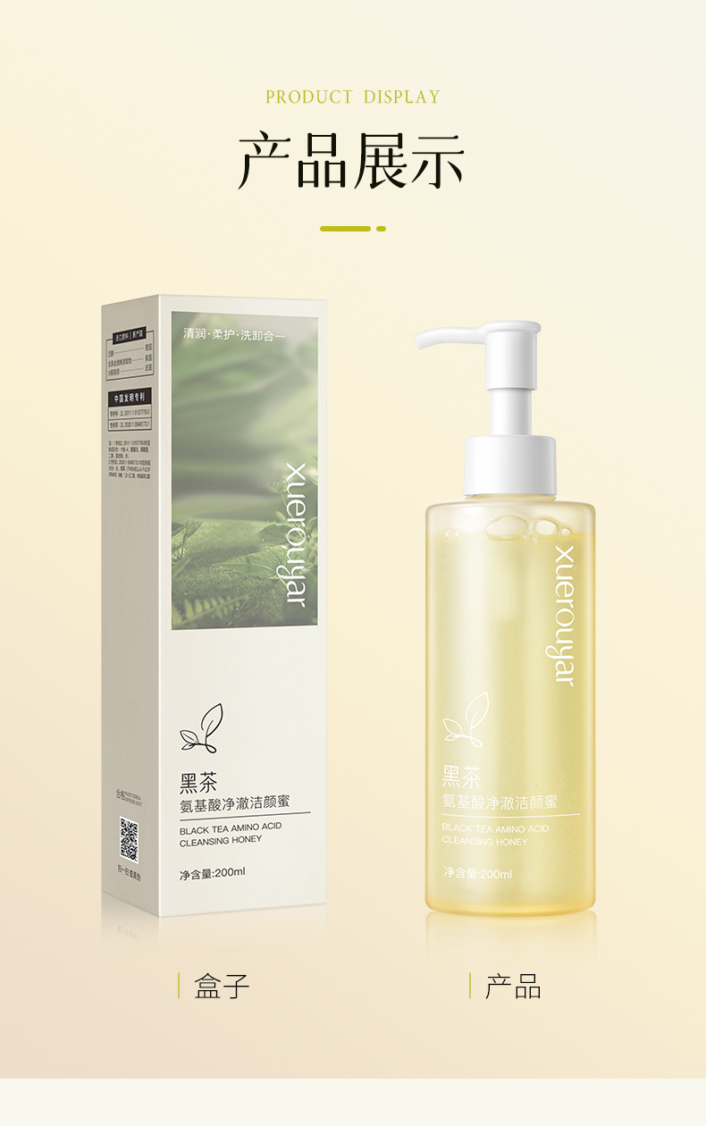 xuerouyar Xuerouya Willow Silk Black Tea Очищающий мед Очищающее средство для лица Очищающее аминокислотное масло Контроль Мягкое очищение и удаление чувствительной кожи в одном Очищающие поры