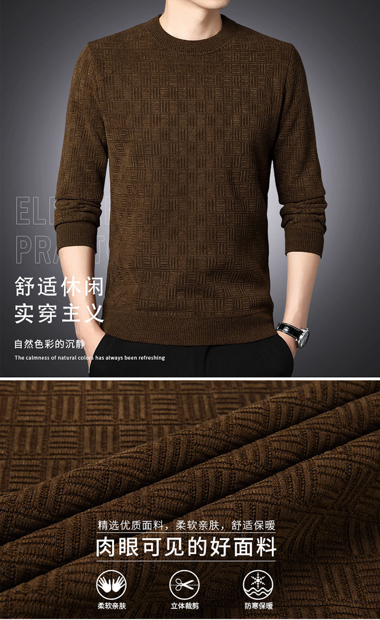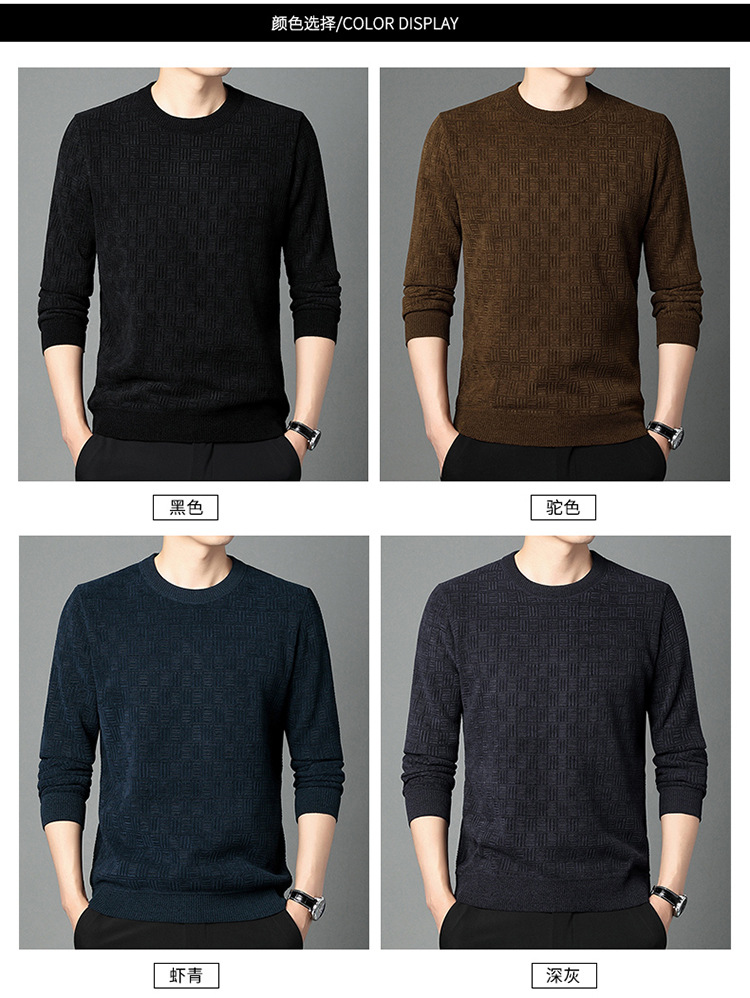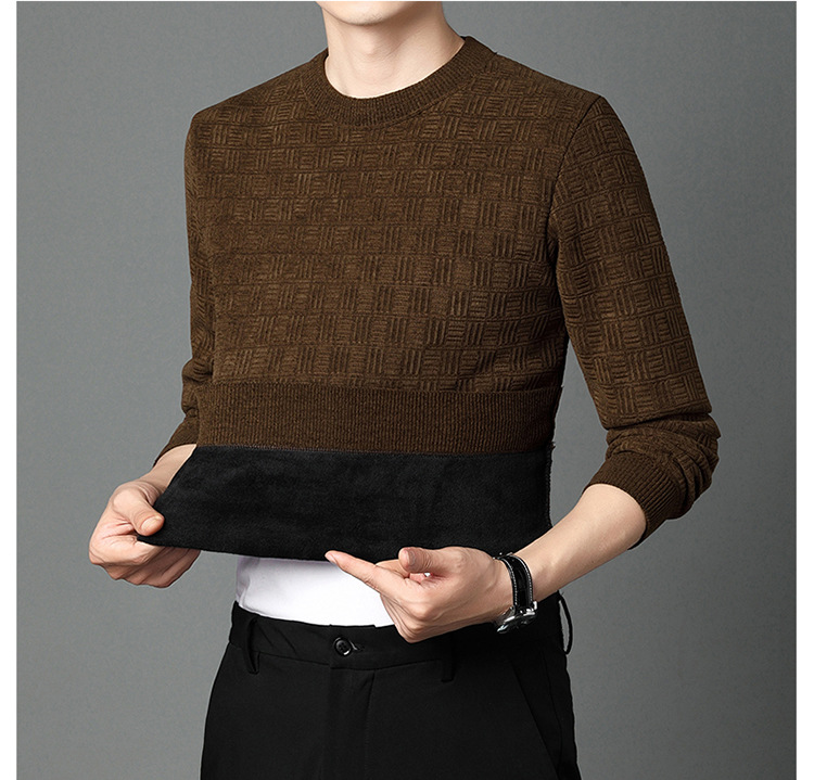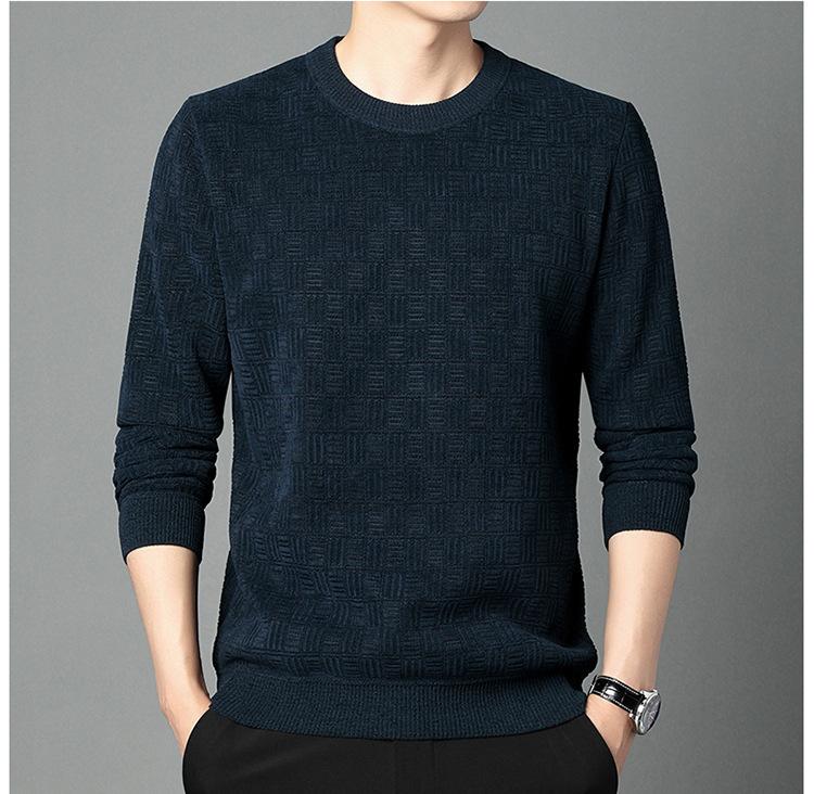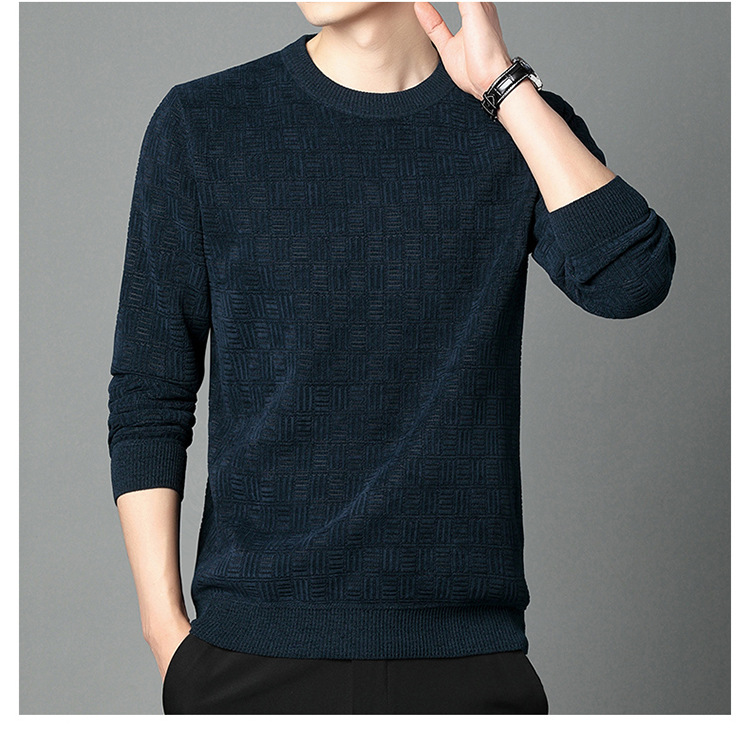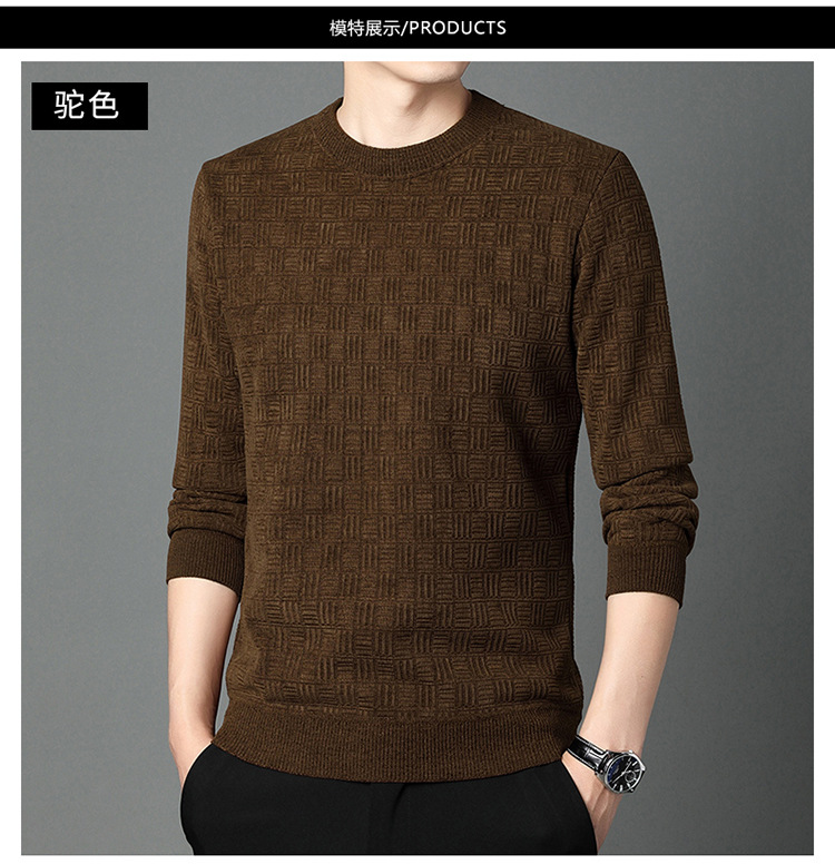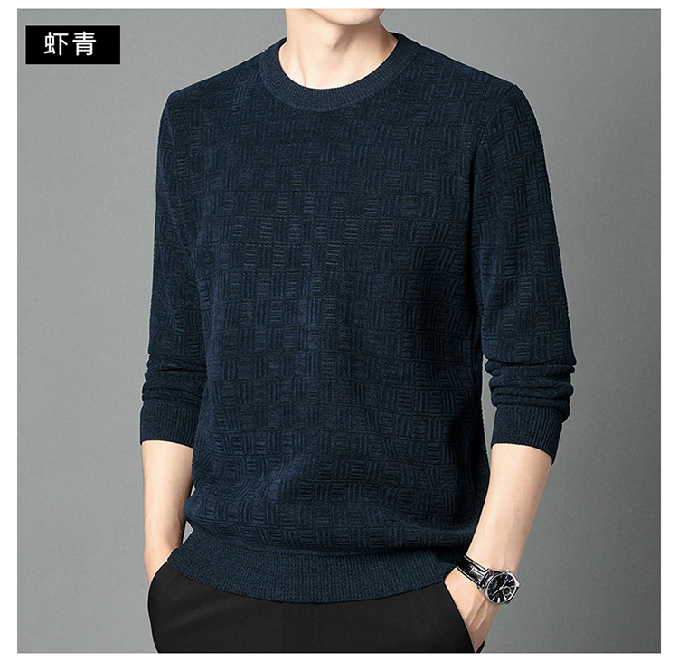 Утолщенный жаккардовый свитер из синели на флисовой подкладке, мужской новый Однотонный пуловер с круглым вырезом, вязаная Базовая рубашка 2022 года, Осень-зима