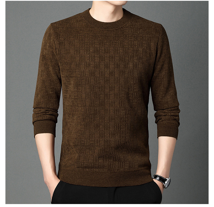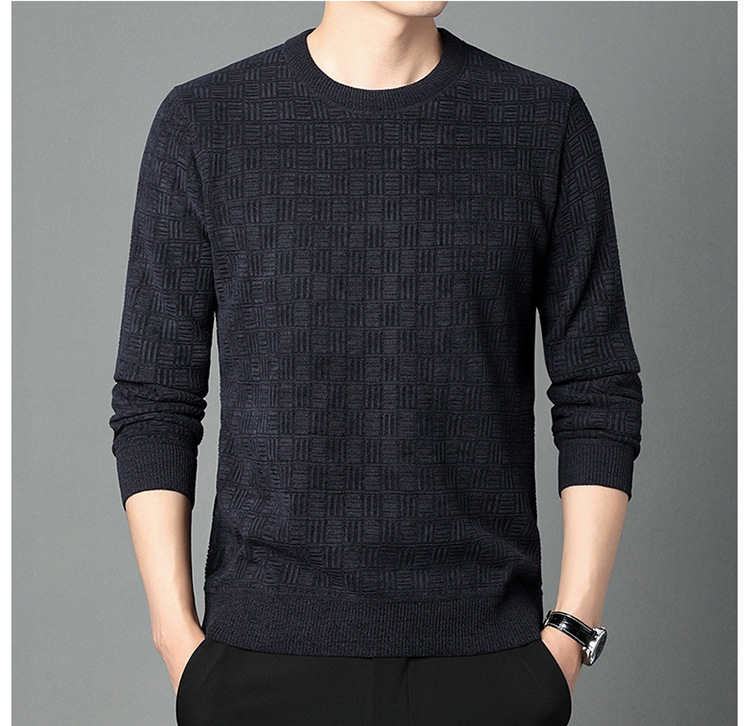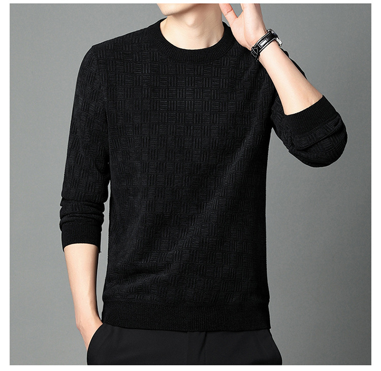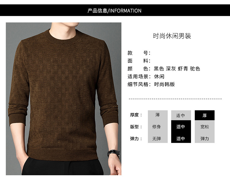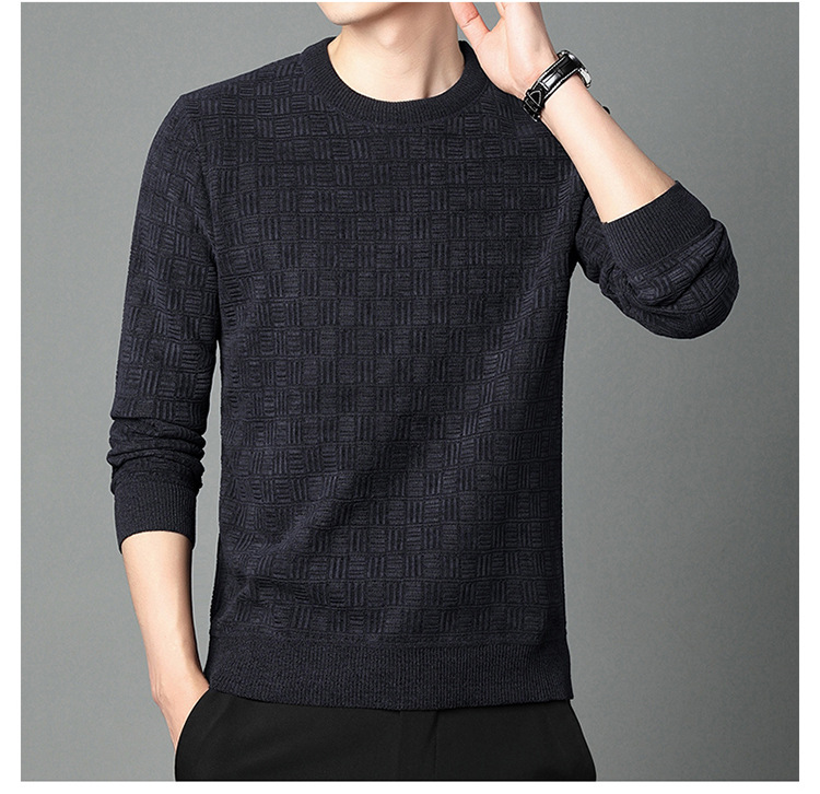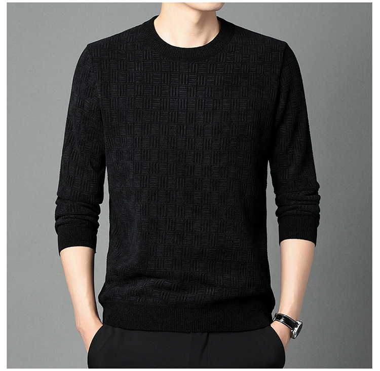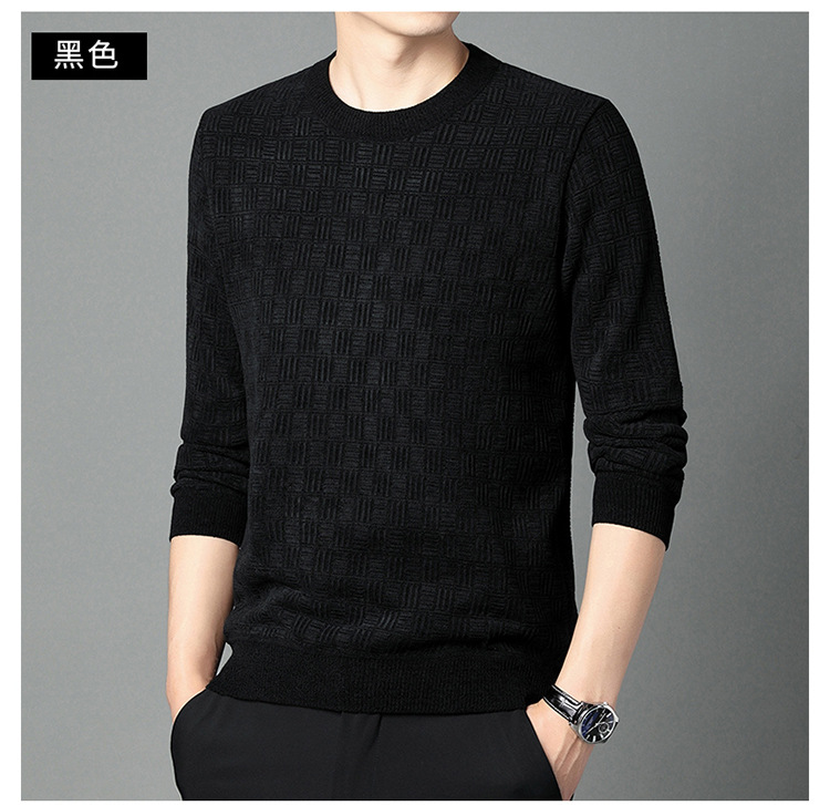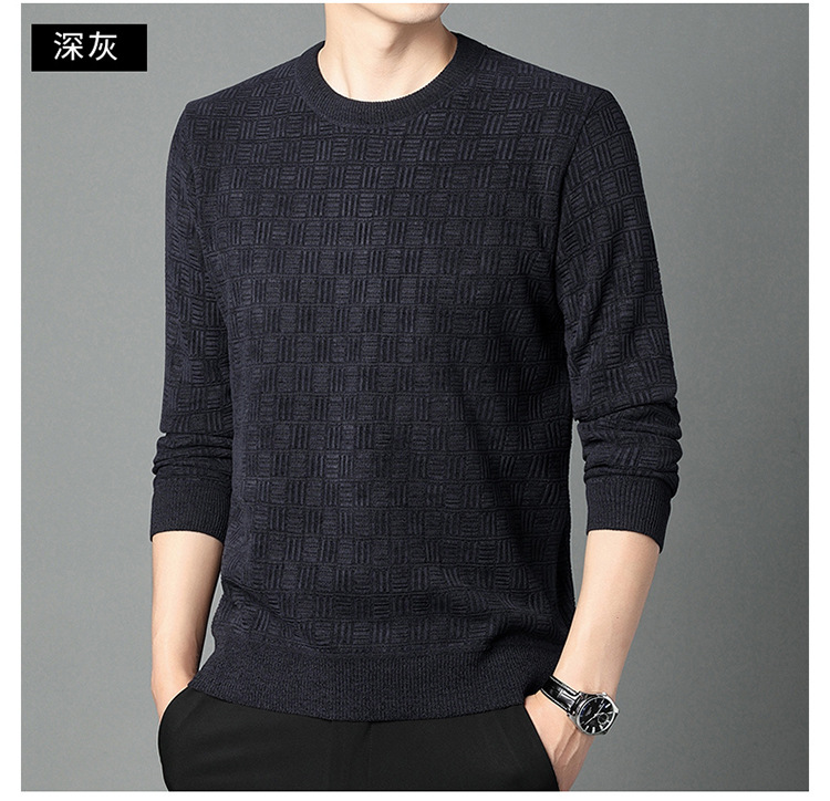Утолщенный жаккардовый свитер из синели на флисовой подкладке, мужской новый Однотонный пуловер с круглым вырезом, вязаная Базовая рубашка 2022 года, Осень-зима