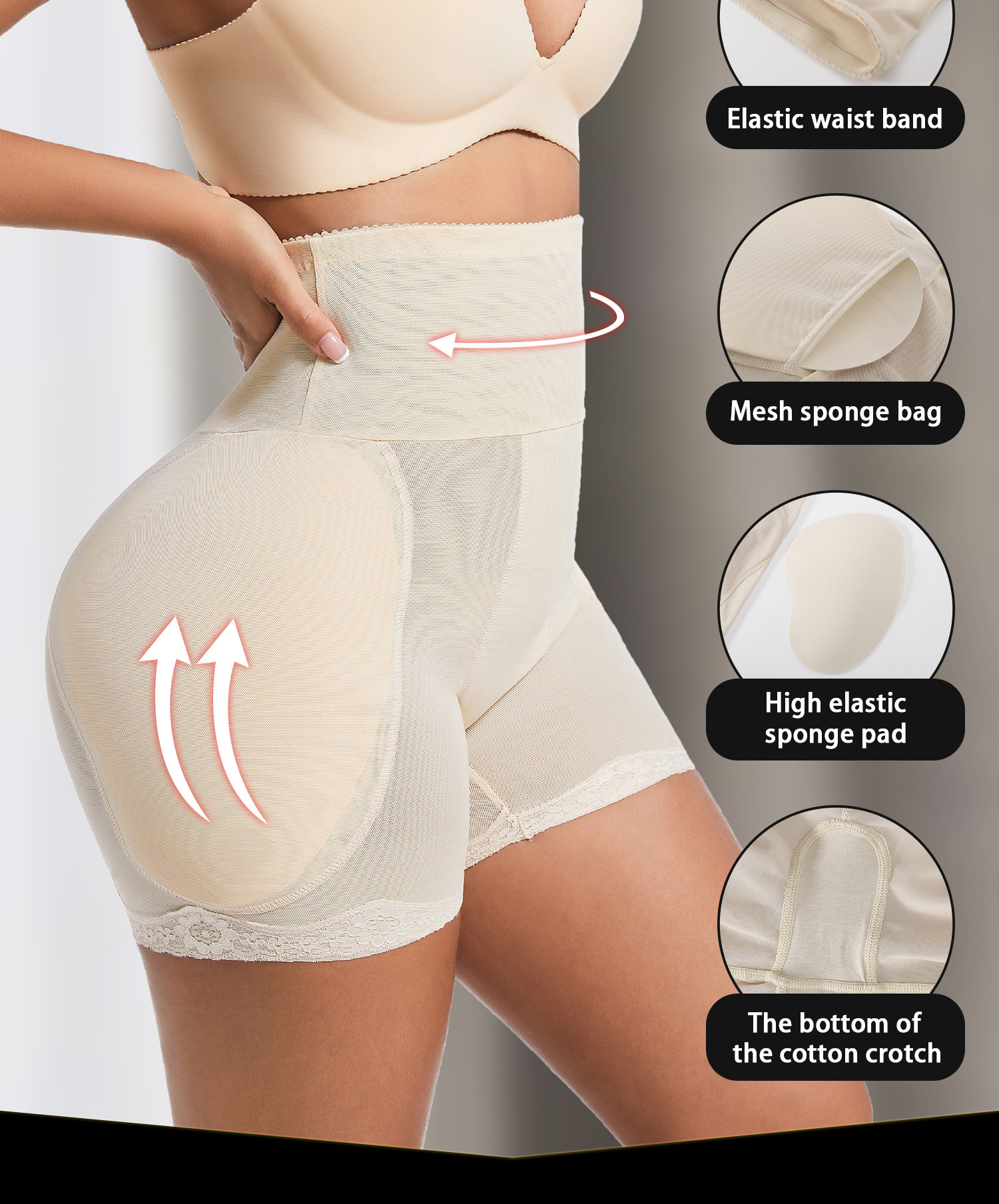 Трансграничные корректирующие трусы больших размеров с высокой талией, эффектом подтяжки ягодиц, невидимые, утягивающие живот, с эффектом увеличения ягодиц и вставками из губчатых подушечек