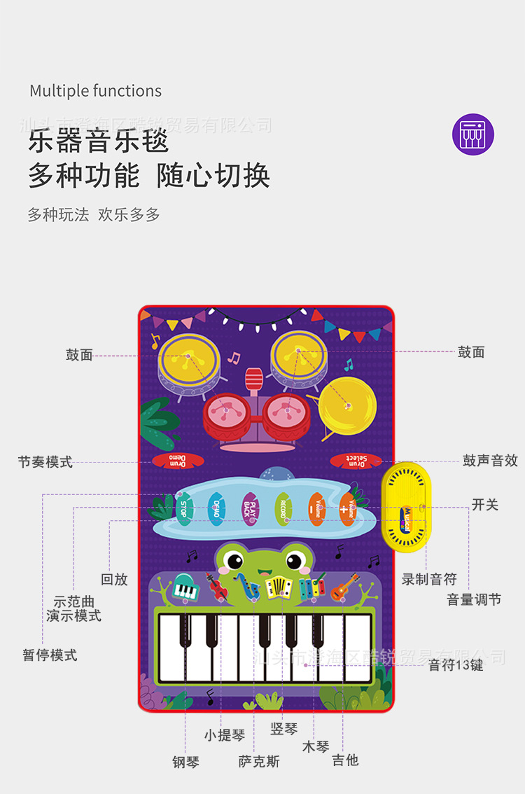 Детский ударный набор для раннего развития музыкальное одеяло сенсорный коврик для фортепиано джазовый барабан развивающие игрушки трансграничные 50*80 см