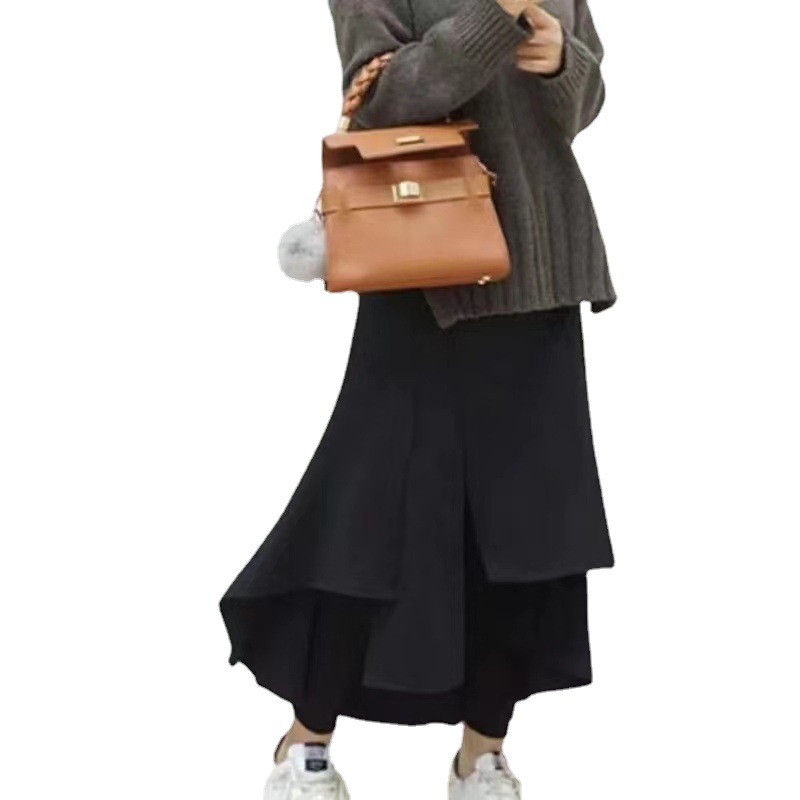 Трансграничная Внешняя торговля Осень и зима больших размеров Нерегулярная юбка с одним брюком Поддельная юбка из двух частей Плюс Размер Ботинки на флисовой подкладке Модные