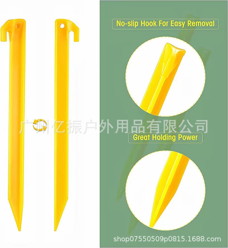 - 轻巧便携:与金属不同,塑料帐篷固定桩不会生锈或损坏,易于携带。