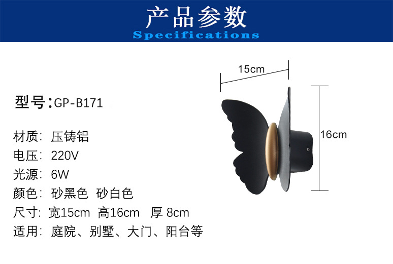 Уличный настенный светильник LED «Бабочка», простой современный светильник для лестниц, проходов, наружных стен, двора, балкона, террасы, входной двери.