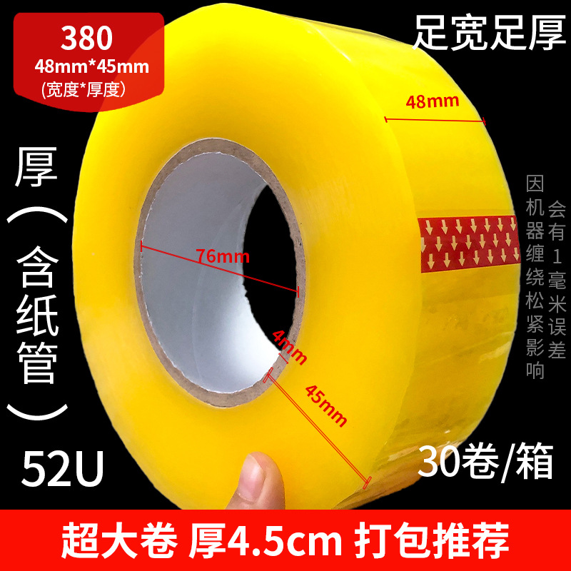 本款胶带做足实实在在4.5cm的宽度,市面上4.5cm基本都是4.35cm,不与客户玩文字游戏。做到低价优惠给客户,本店给出客户一点小建议:可购买本店胶带和同行店内同样标4.5cm的产品,放在一起上下两端进行封箱测试对比。本店所有宽度厚度均有标注,保证足宽足厚(误差1mm左右属于正常)