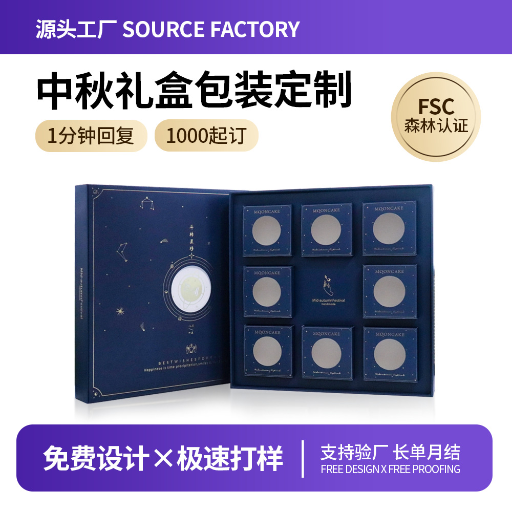 Подарочная коробка для лунных пряников на фестиваль середины осени, индивидуальная упаковка, подарочная коробка с откидной крышкой, изготовленная на заказ, с двойным открыванием, пустая коробка
