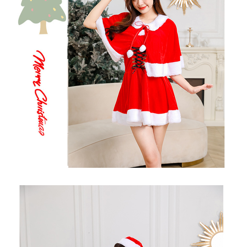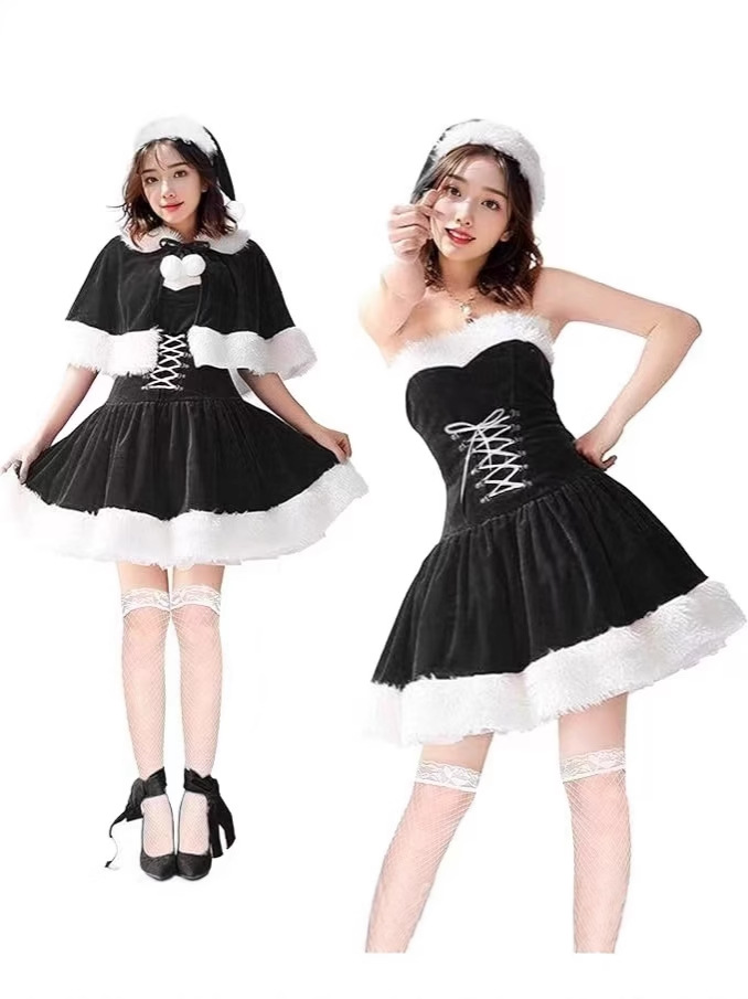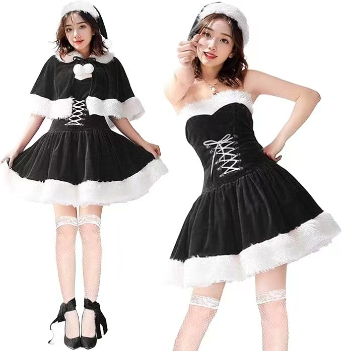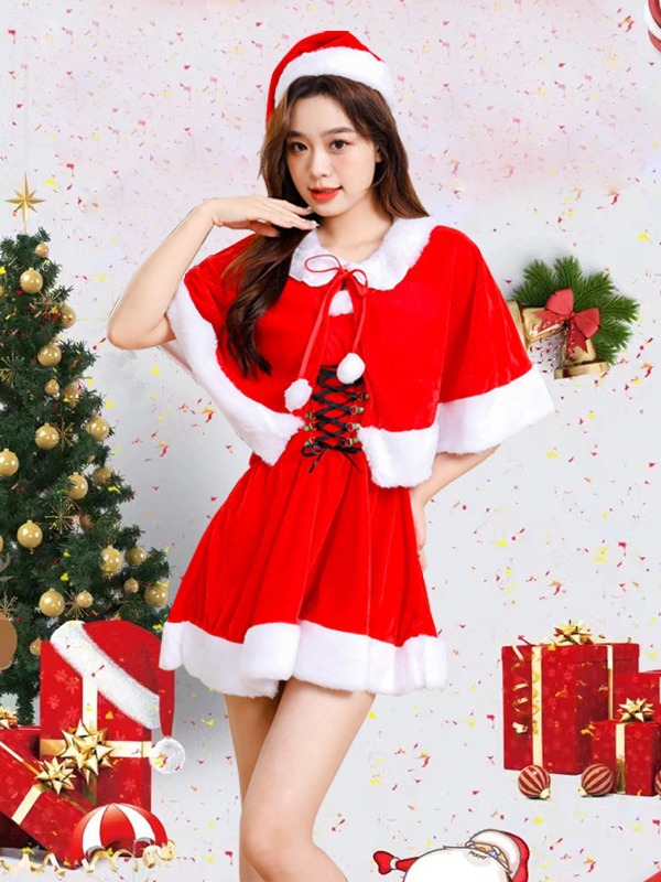Реальный выстрел Новый Рождественский костюм Япония Лотте Рождество без бретелек ремень сценический костюм платье Маленькая шаль