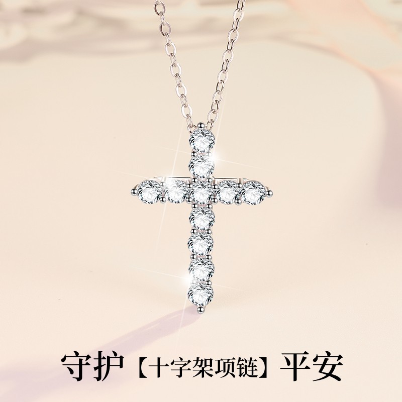Женское ожерелье из стерлингового серебра 925 пробы, ретро кулон с муассанитом, кулон Guardian Peace, крест на ключицу, производитель, оптовая продажа, трансграничная