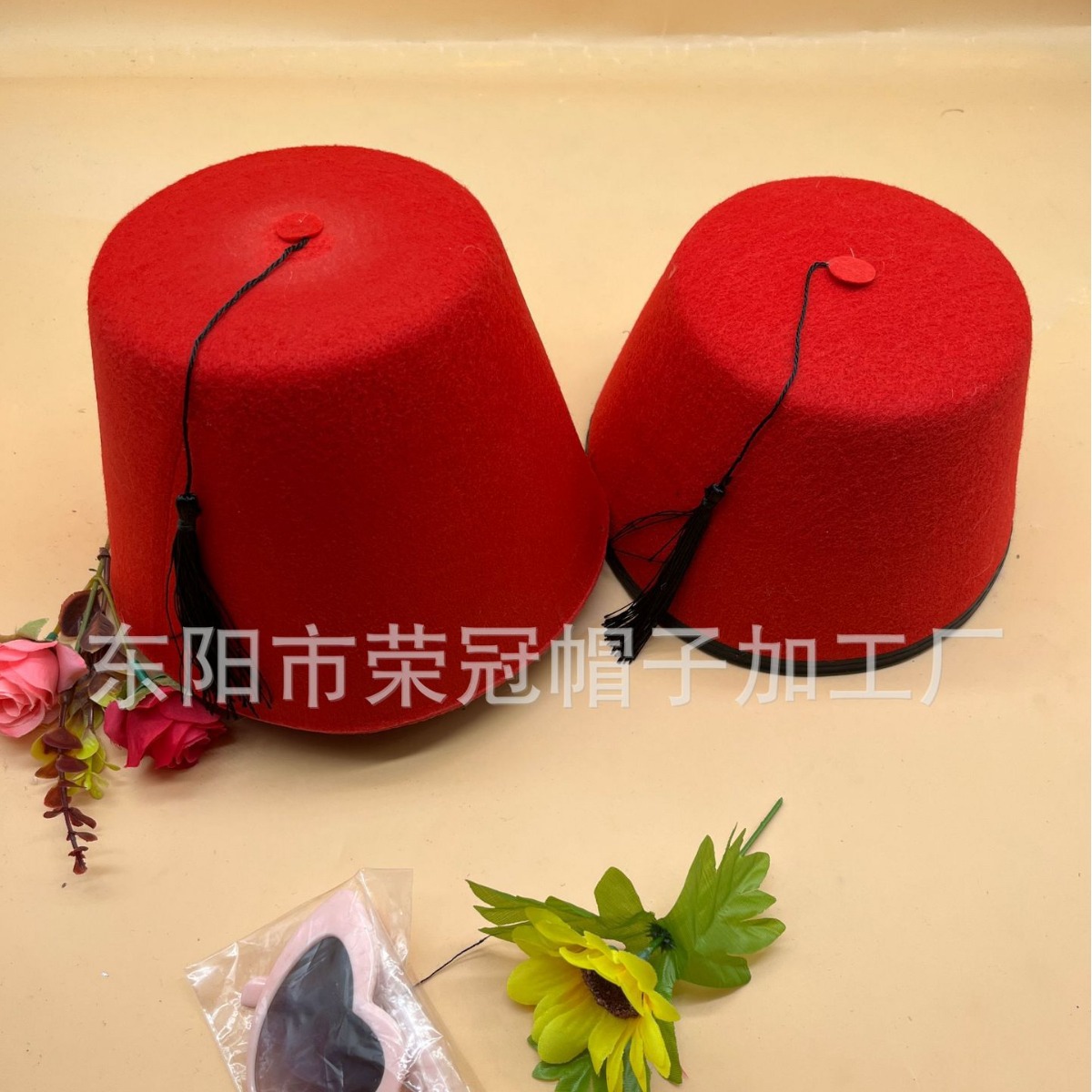 Оптовая Продажа с фабрики красная Турецкая шляпа Марокканская шляпа с плоским верхом кисточкой висит кисточка Нетканая шляпа красная