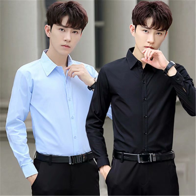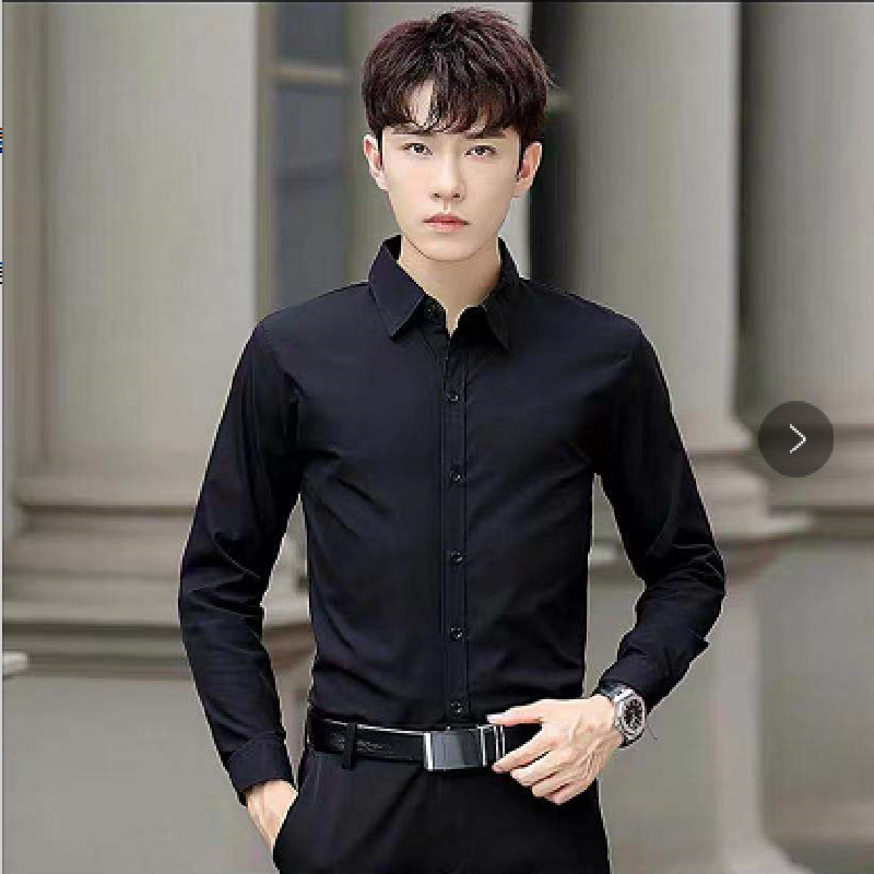 Мужская летняя деловая британская рубашка, мужская Тонкая формальная черная рубашка с длинным рукавом в Корейском стиле, рубашка больших размеров, не гладкая рубашка