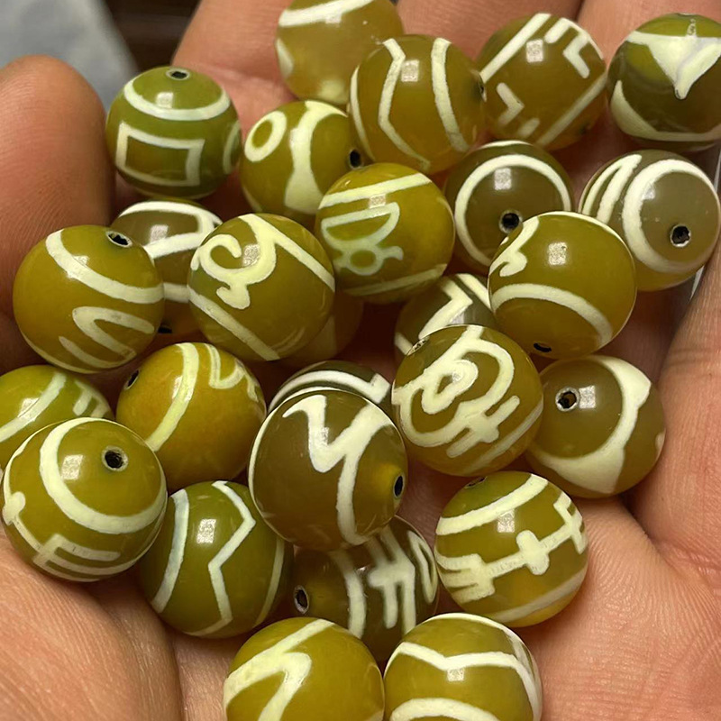 Оптовая Продажа с фабрики Тибетский натуральный желтый халцедон глянцевый яркая поверхность 14 мм узор Тианжу свободные бусины Бодхи бусины аксессуары
