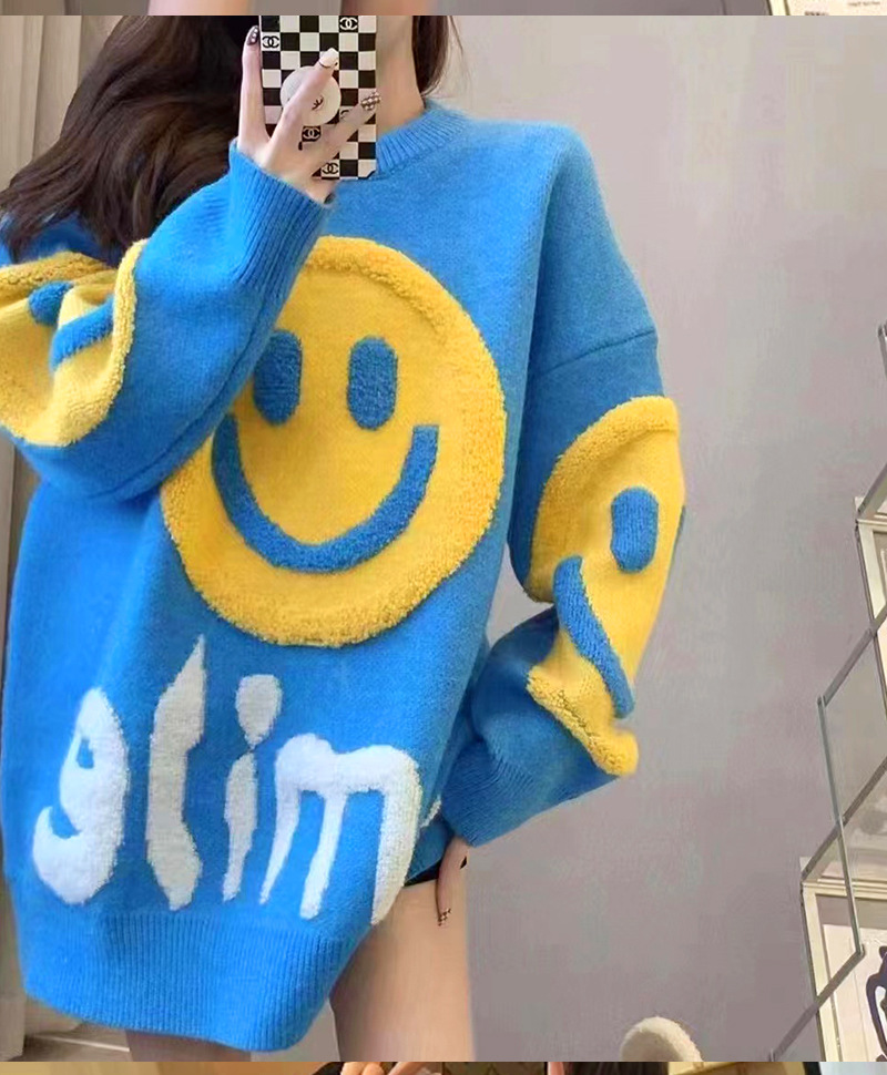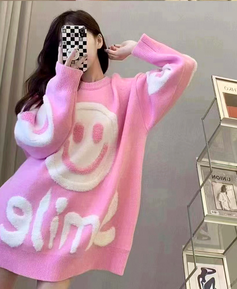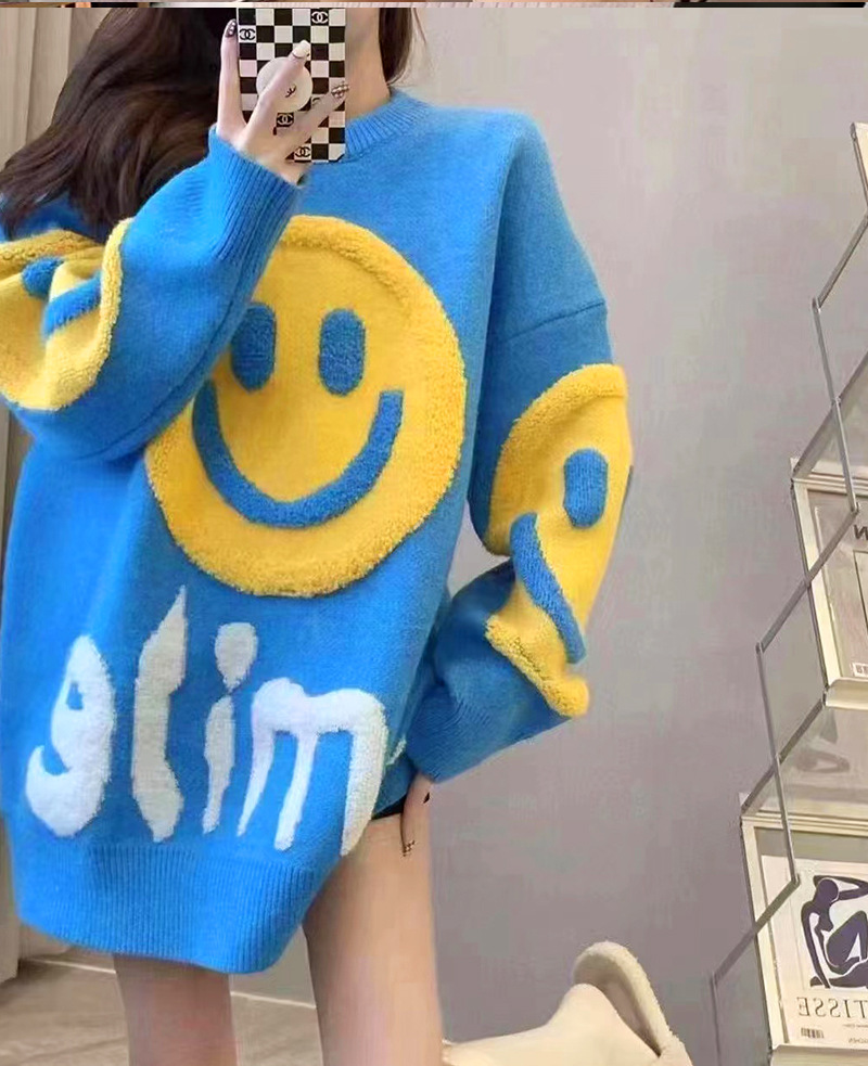 Свободный свитер Osaka, женский осенне-зимний женский модный пуловер средней длины с круглым вырезом и смайликом, вязаный топ