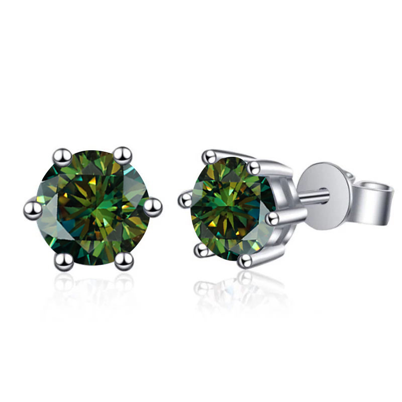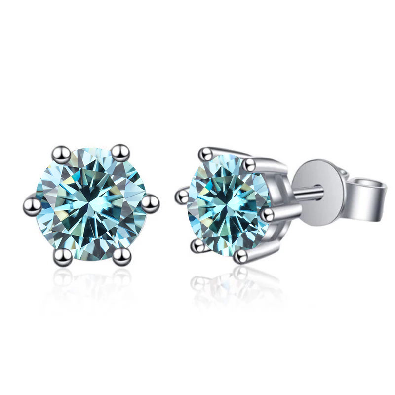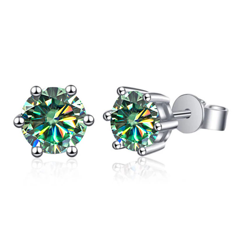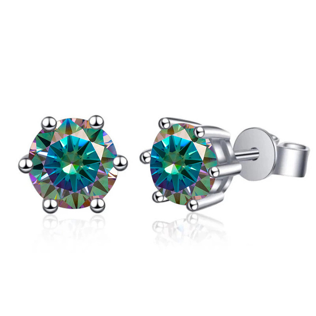蓝绿色彩色莫桑石耳钉牛头款式S925银材质直播货源跨境电商专供