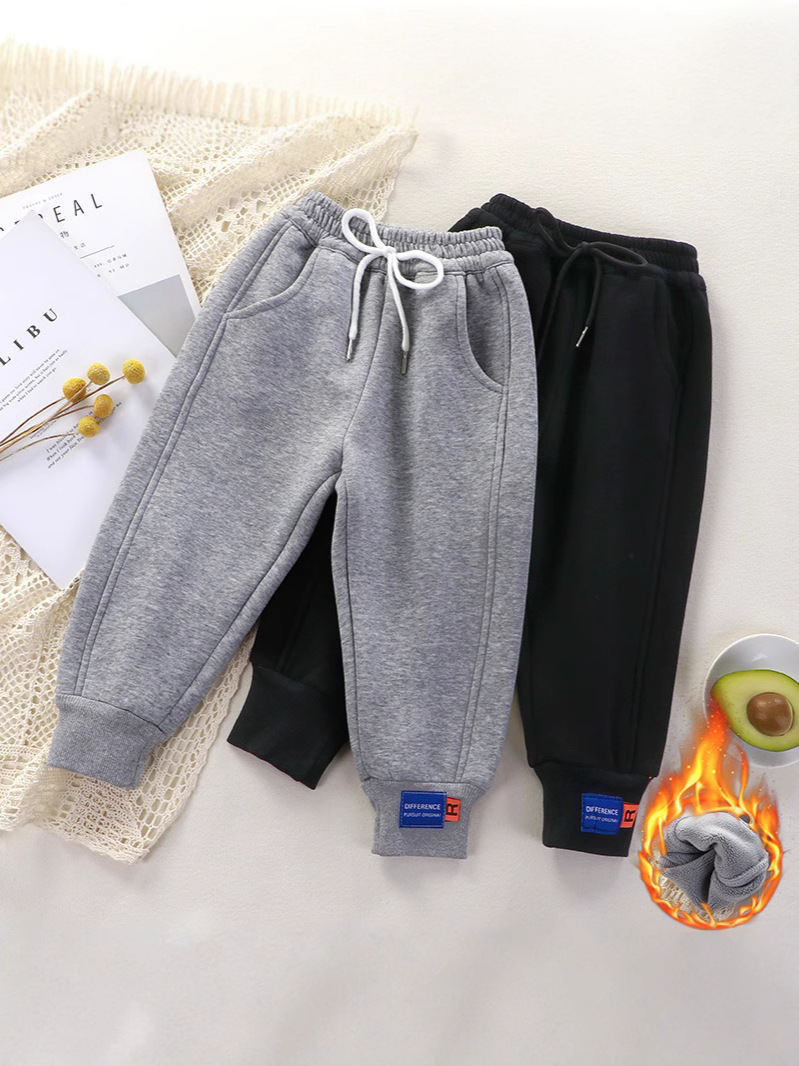 Детские спортивные штаны на флисовой подкладке оптом осенне-зимние повседневные брюки для мальчиков и девочек, хлопковые детские интегрированные утолщенные модные спортивные штаны