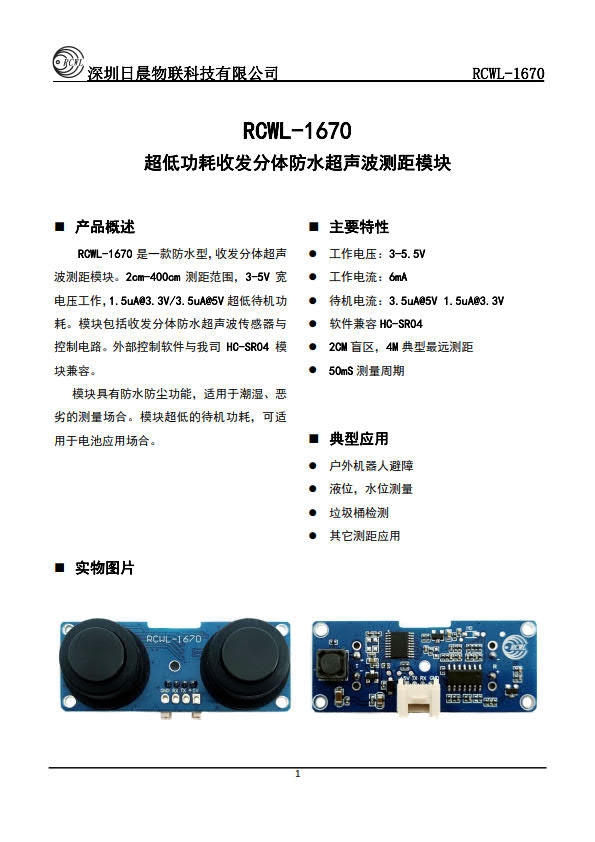 RCWL-1670 водонепроницаемый Ультразвуковой Модуль дальности разделенный ультразвуковой детектор парковочного места Обнаружение наведения парковки