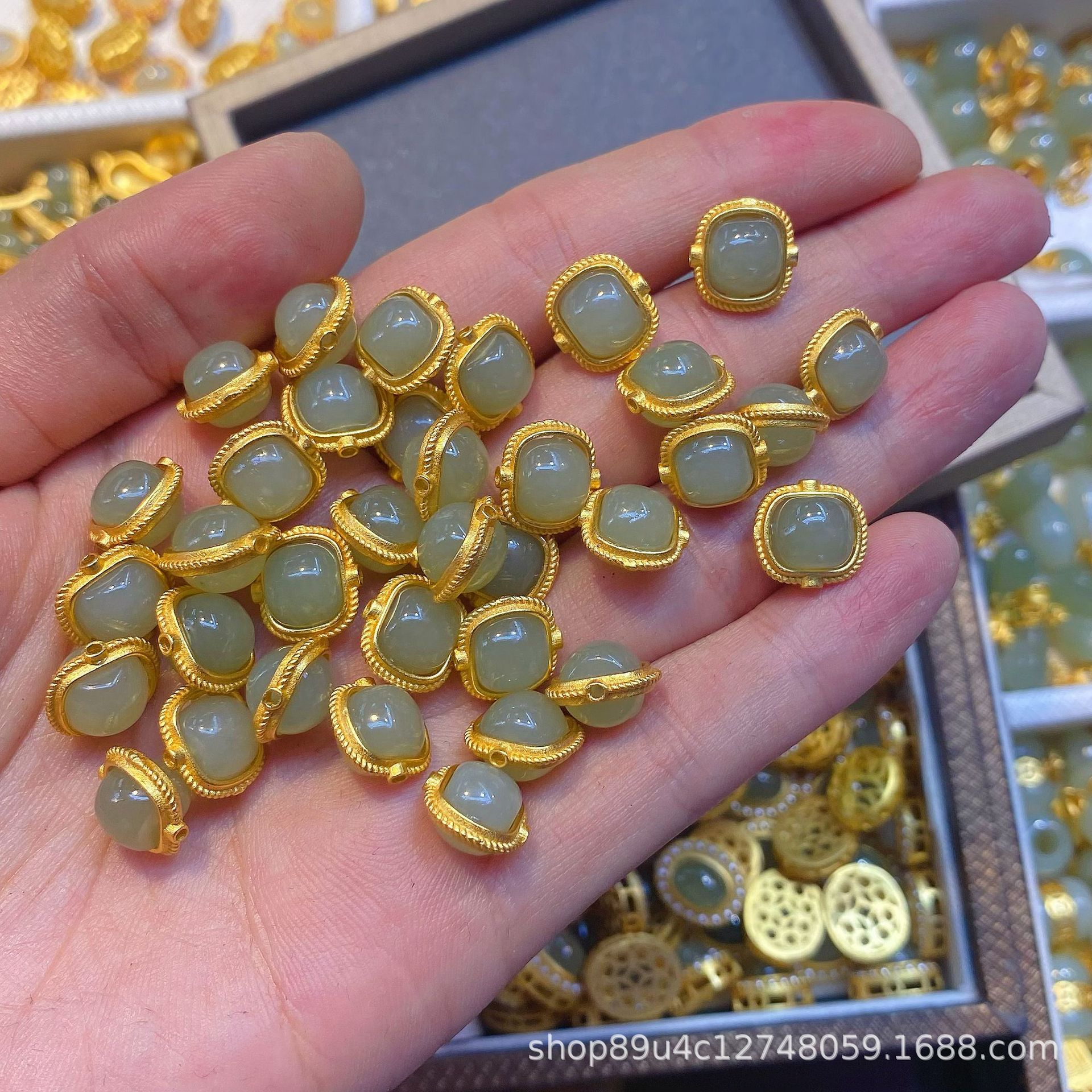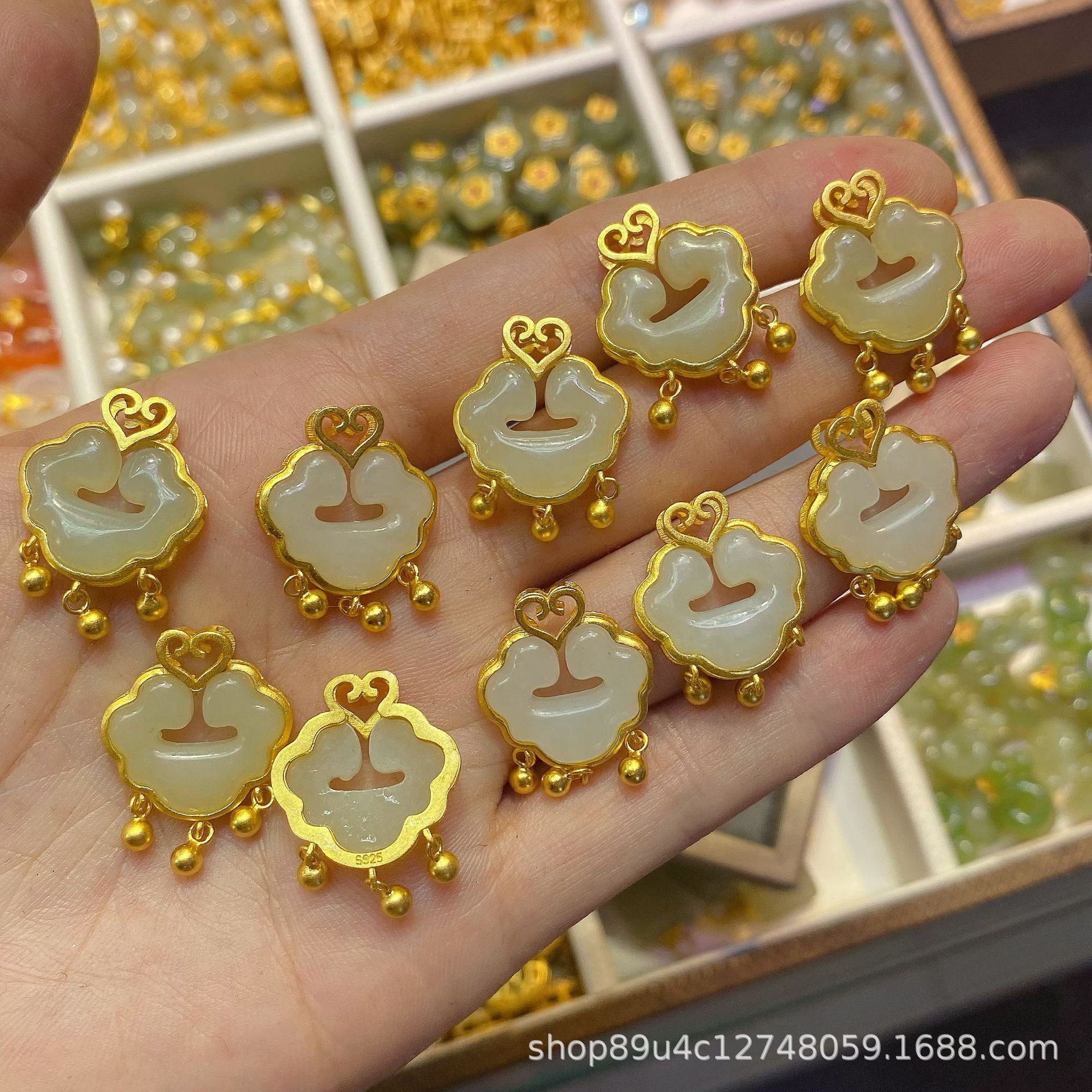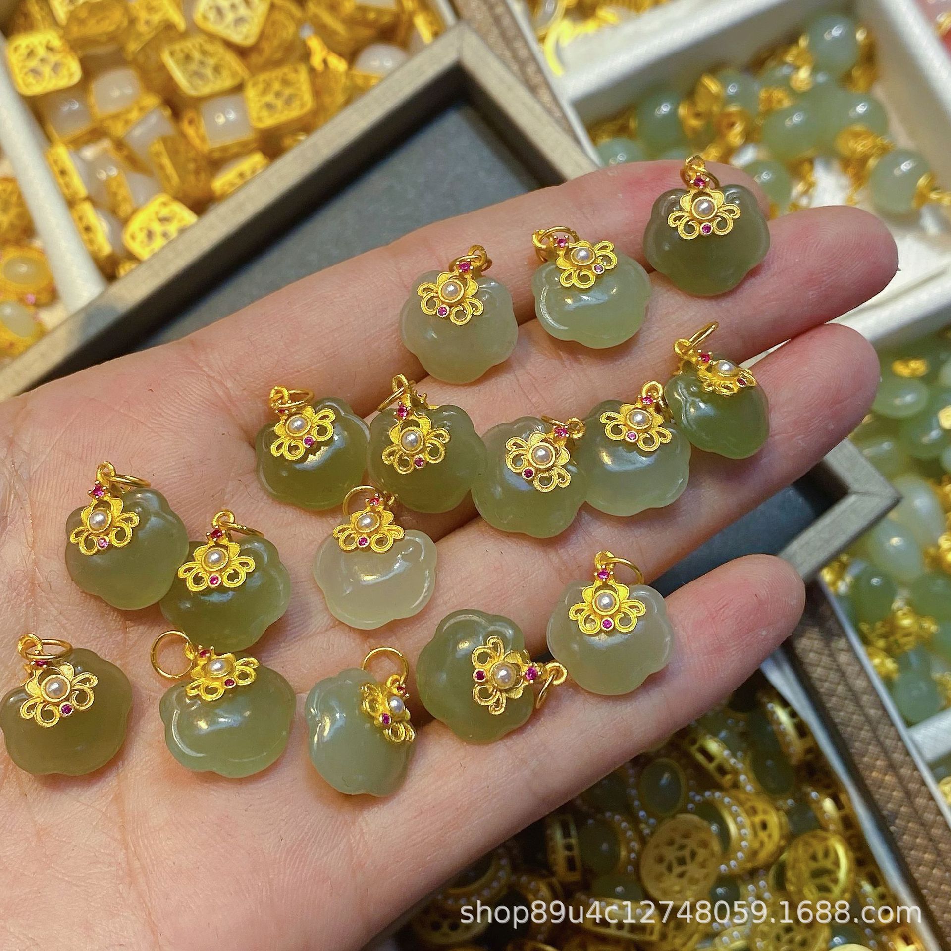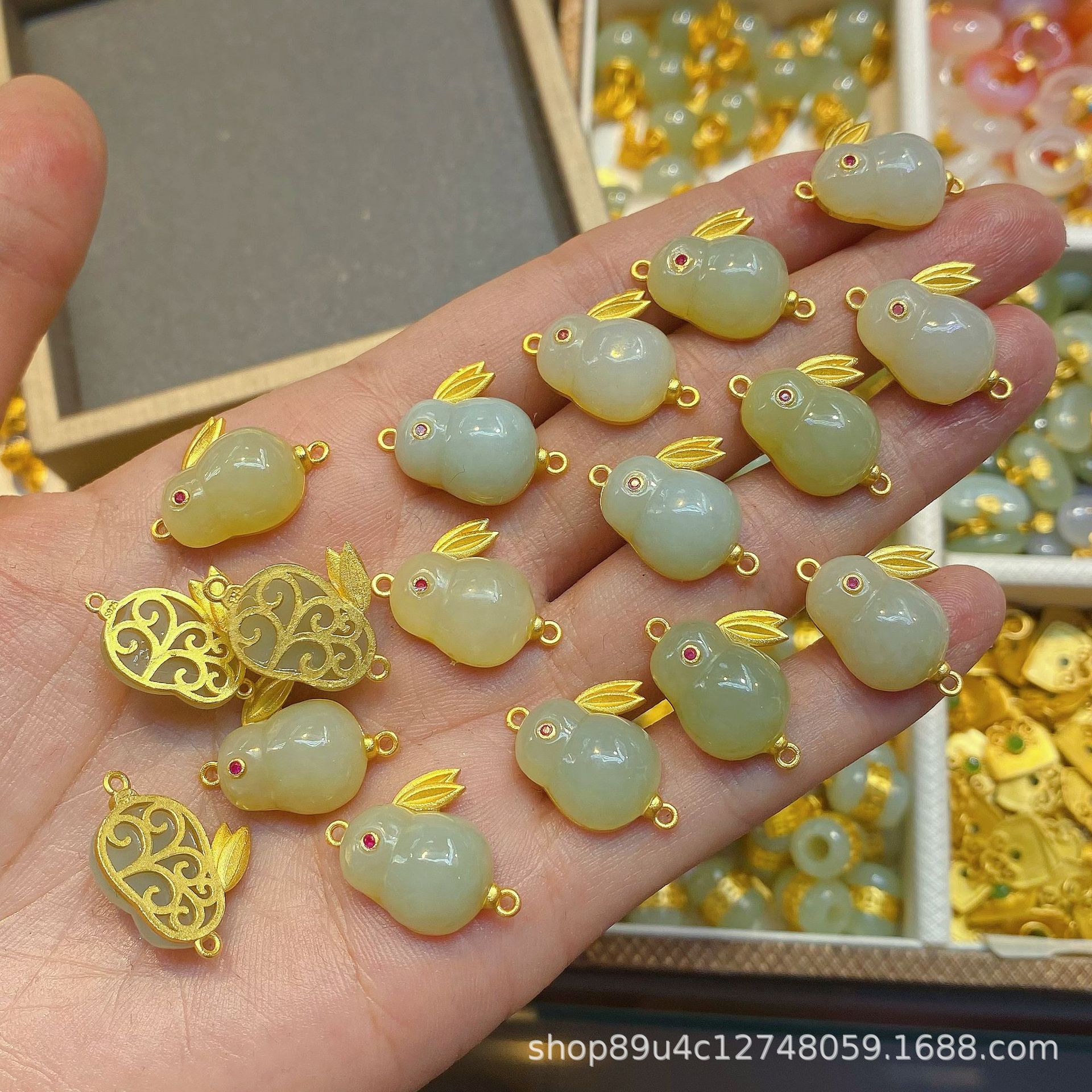 S925 серебряные аксессуары, браслет, аксессуары из бисера, аксессуары «сделай сам», кролик, тыква, древнее золото, нефритовый серебряный кулон Hetian