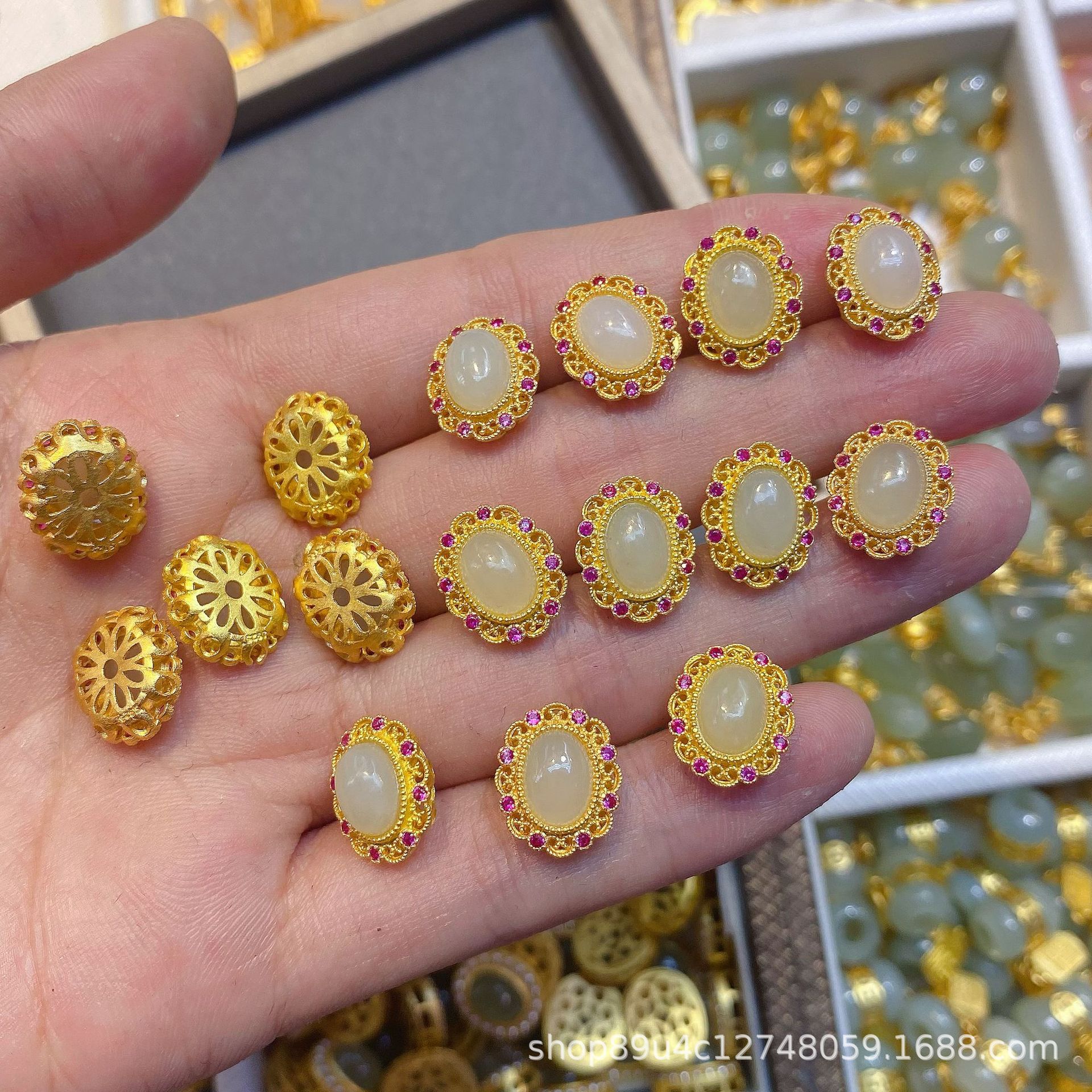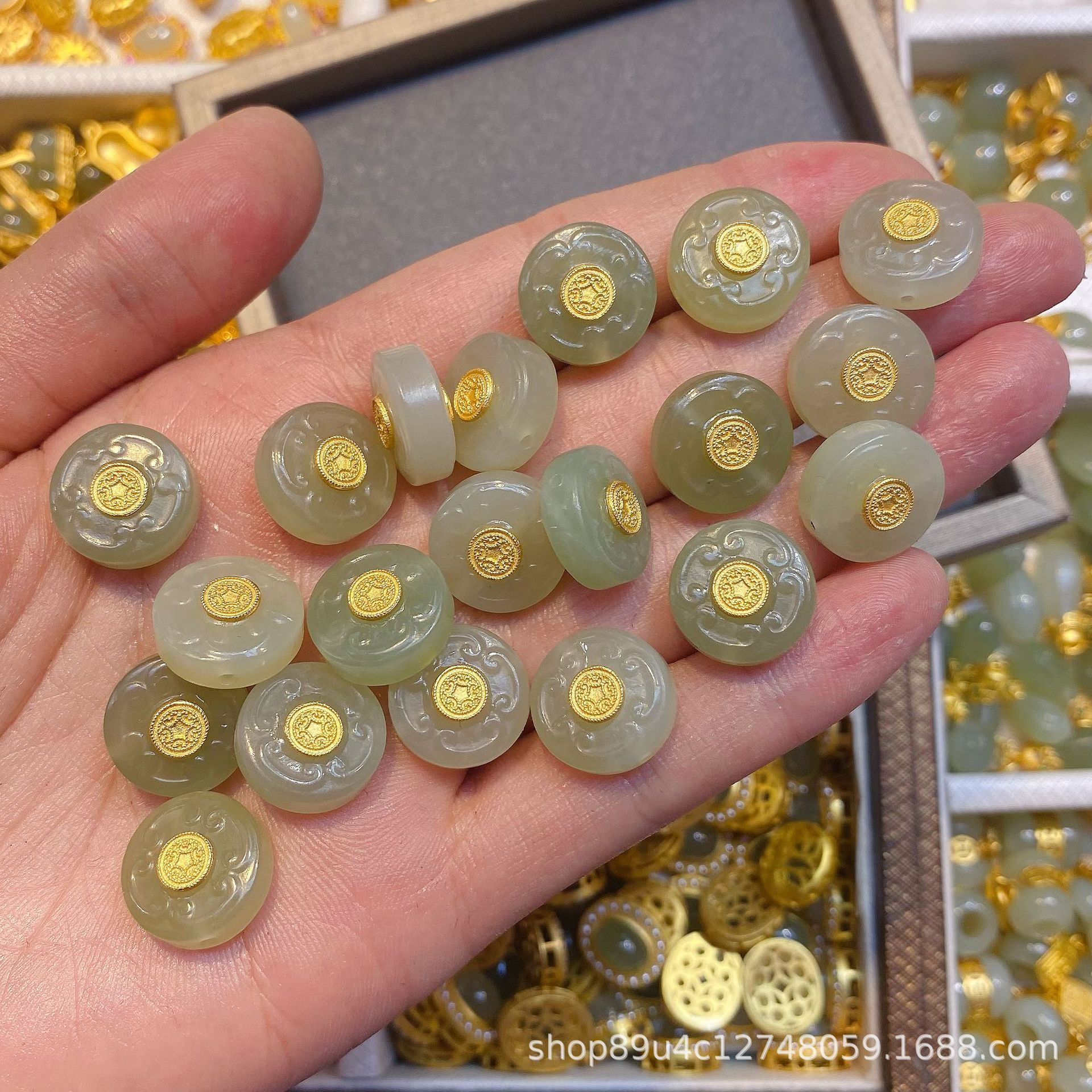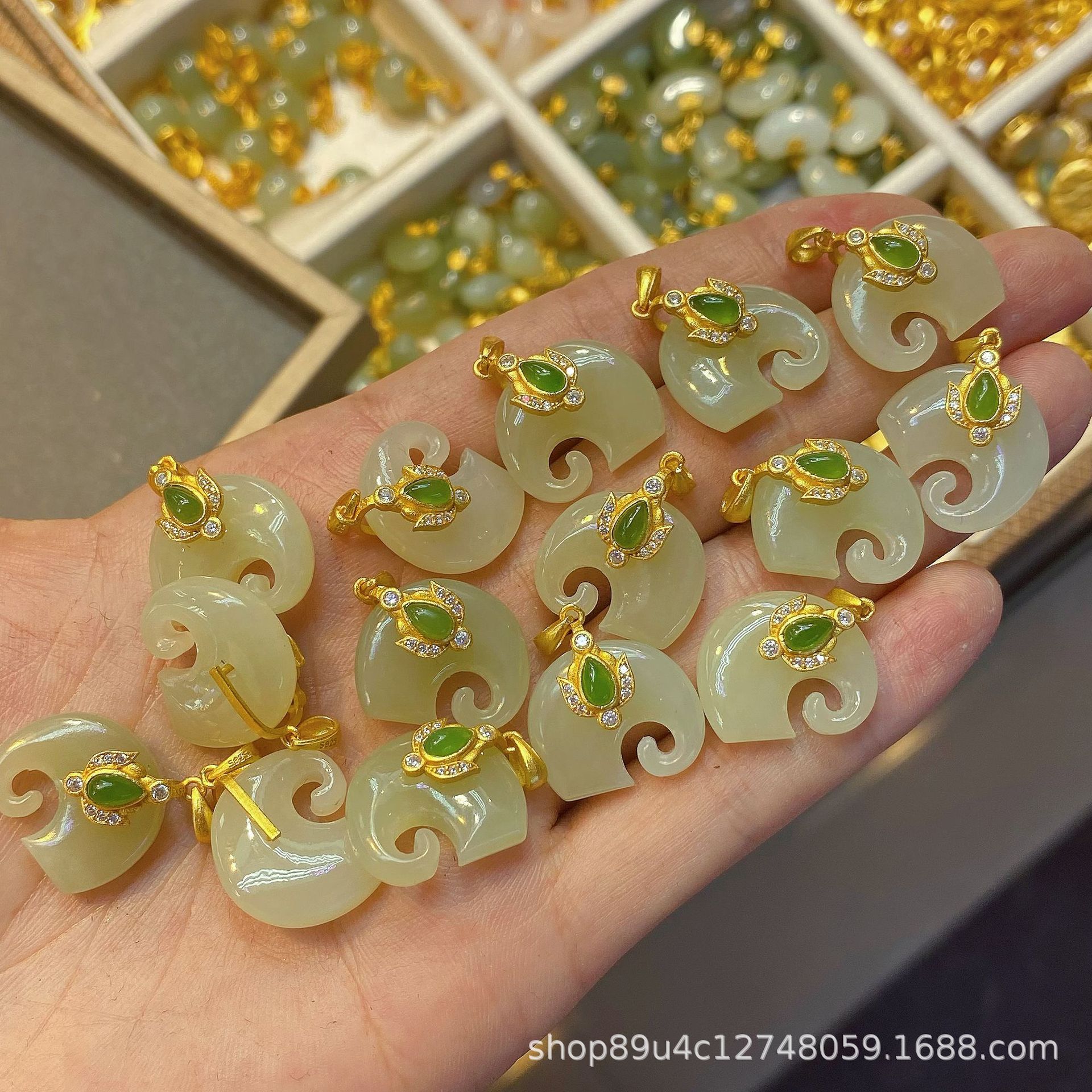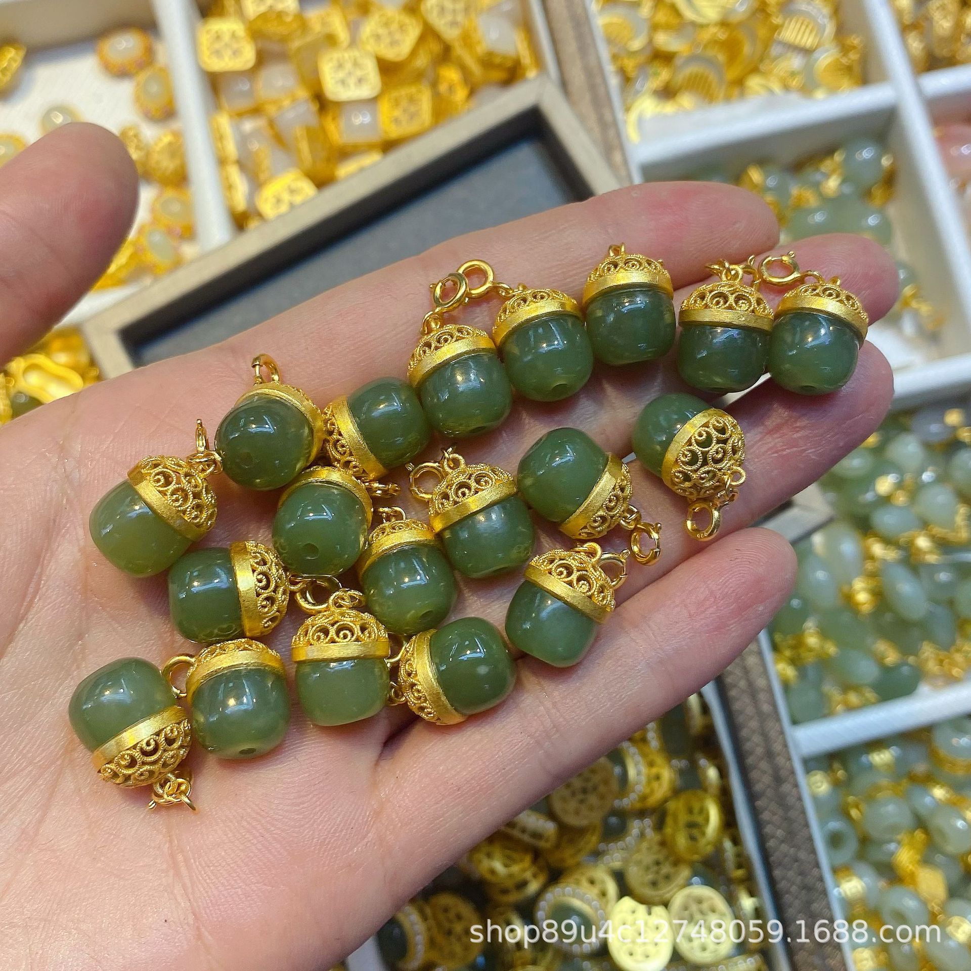 S925 серебряные аксессуары, браслет, аксессуары из бисера, аксессуары «сделай сам», кролик, тыква, древнее золото, нефритовый серебряный кулон Hetian