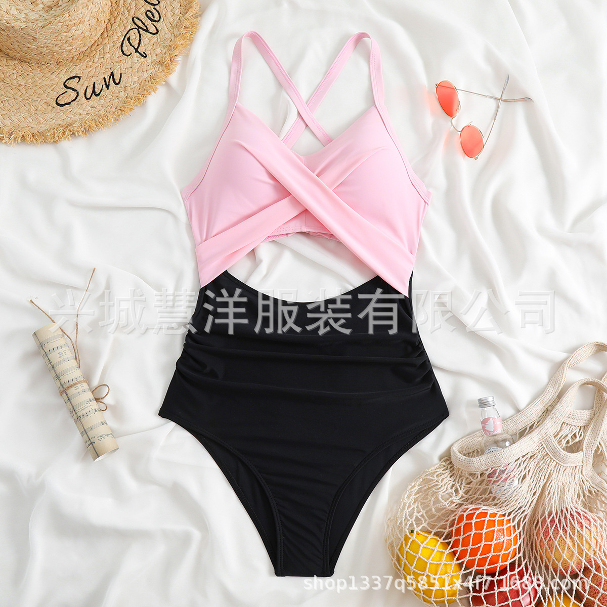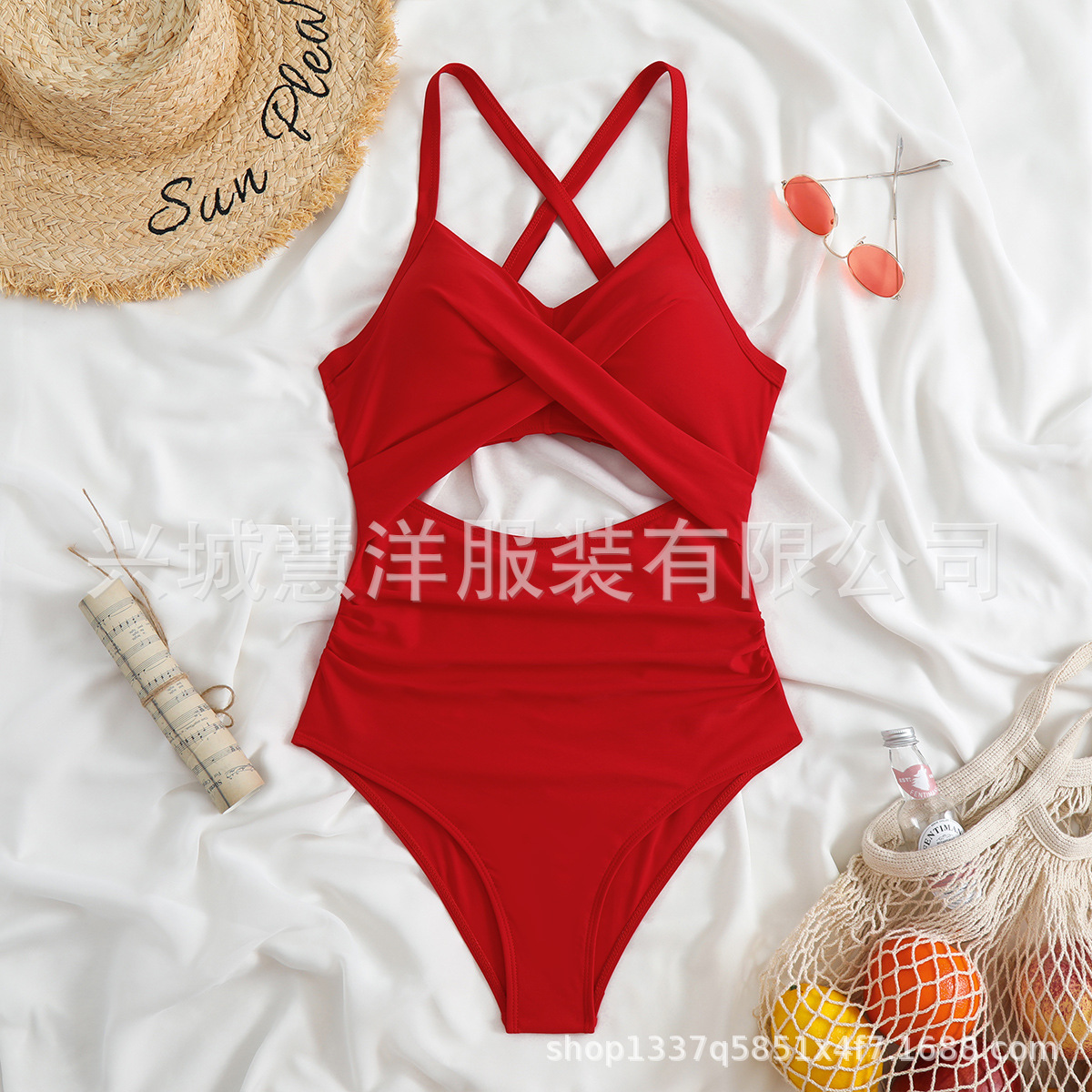25 лет европейский и американский новый цельный купальник соответствующего цвета сексуальный вырезанный купальник на подтяжках для женщин Amazon трансграничная оптовая продажа