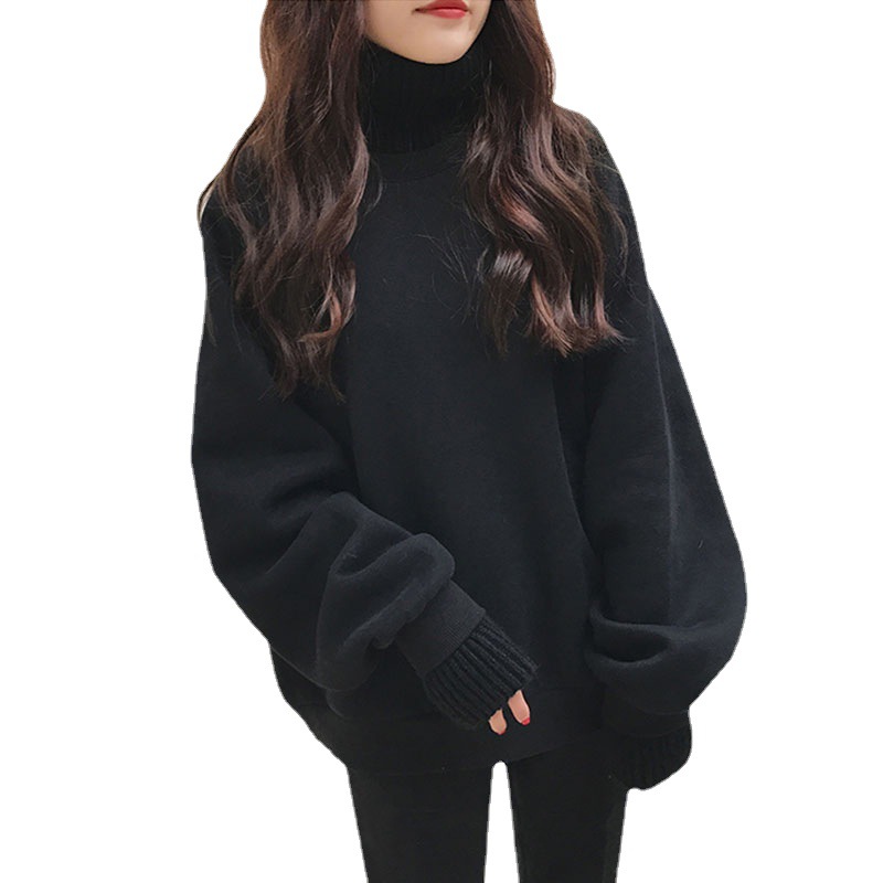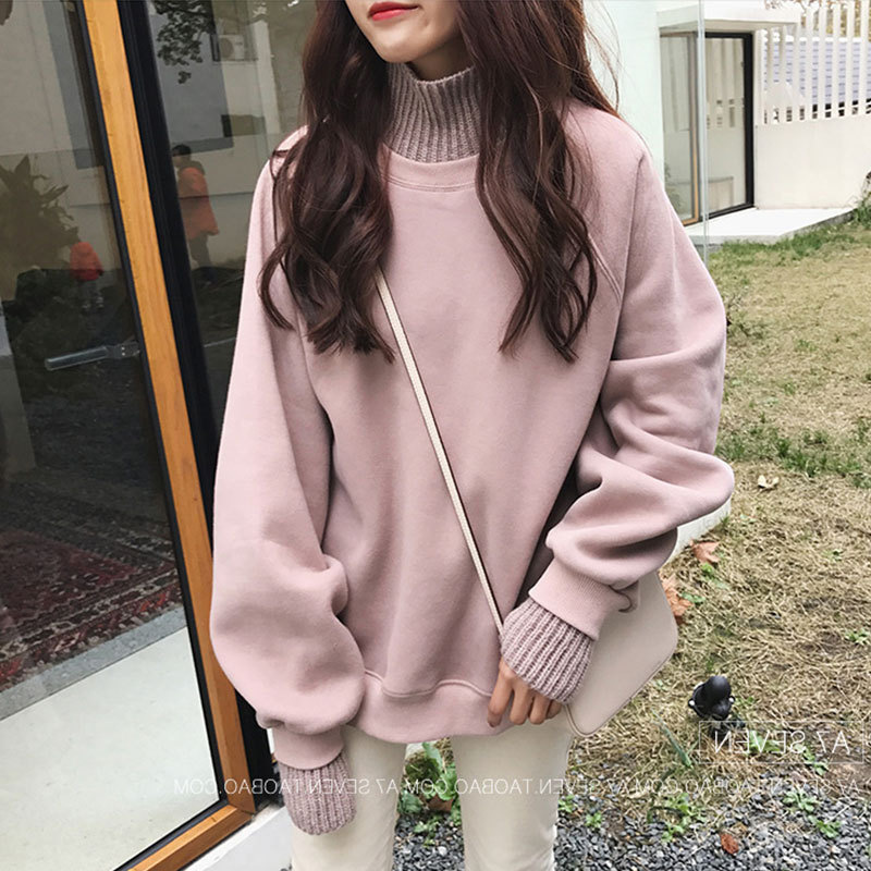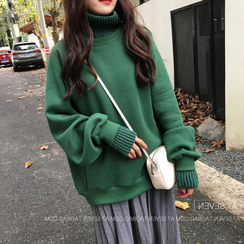 Утепленный свитер на флисовой подкладке, новинка, Женская осенне-зимняя Модная студенческая свободная ленивая искусственная водолазка из двух предметов, куртка-свитер в Корейском стиле