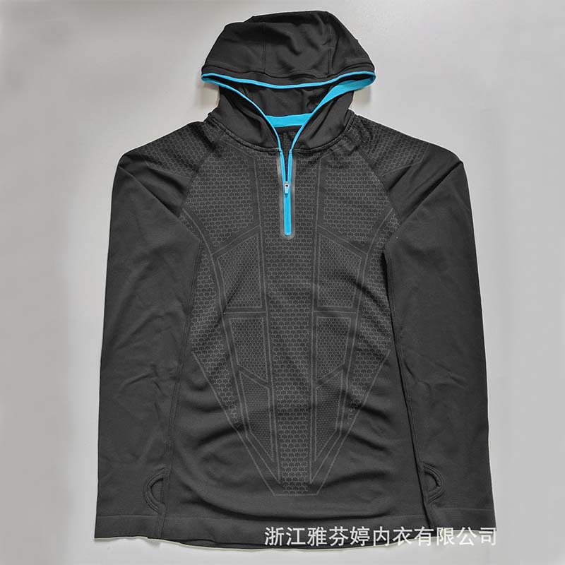瑜伽健身无缝工艺上衣兜帽防雨健身瑜伽紧身除湿排汗高弹力显身材,厂家直销,尾货处理。