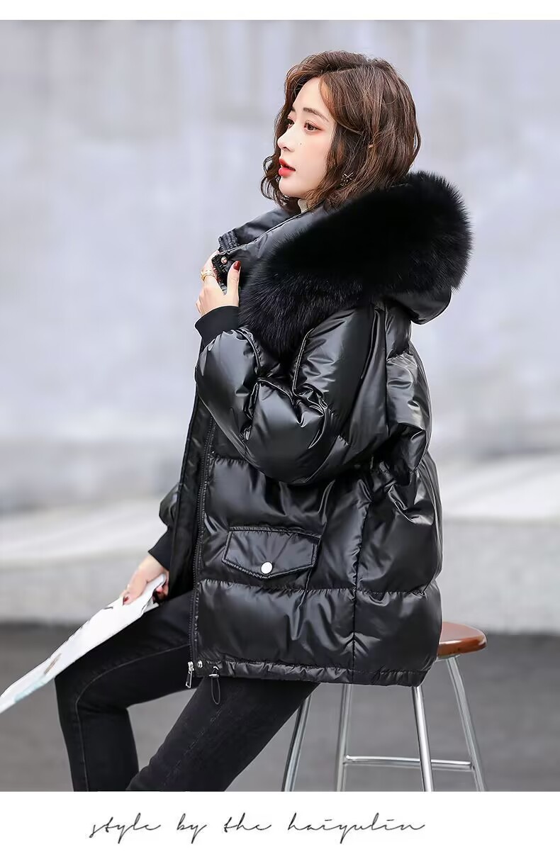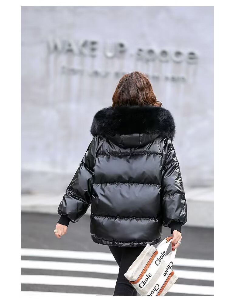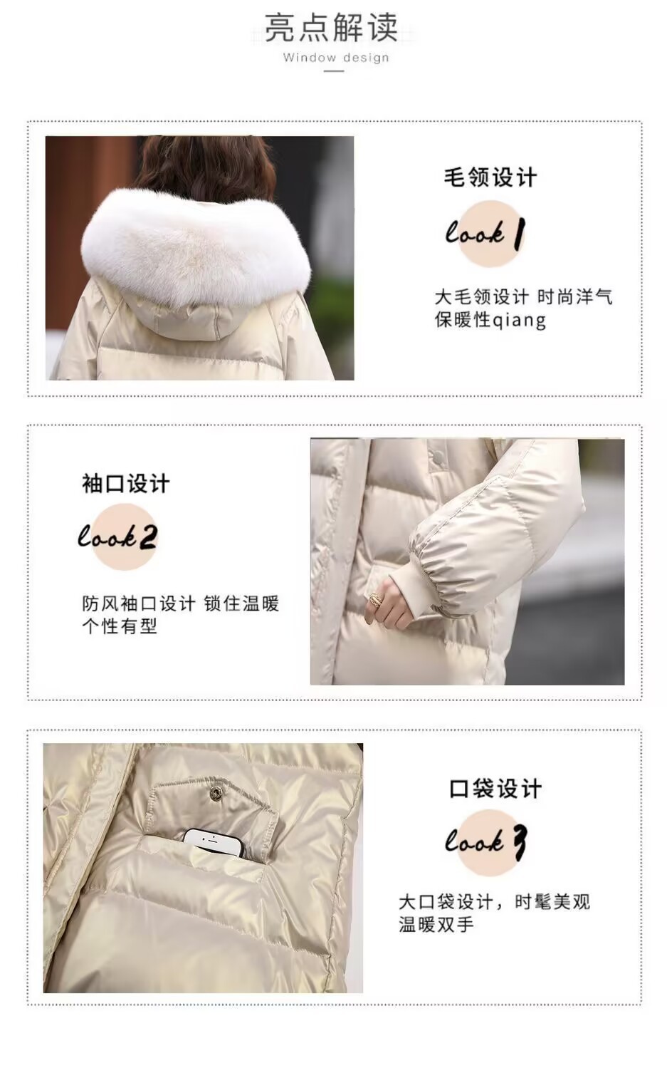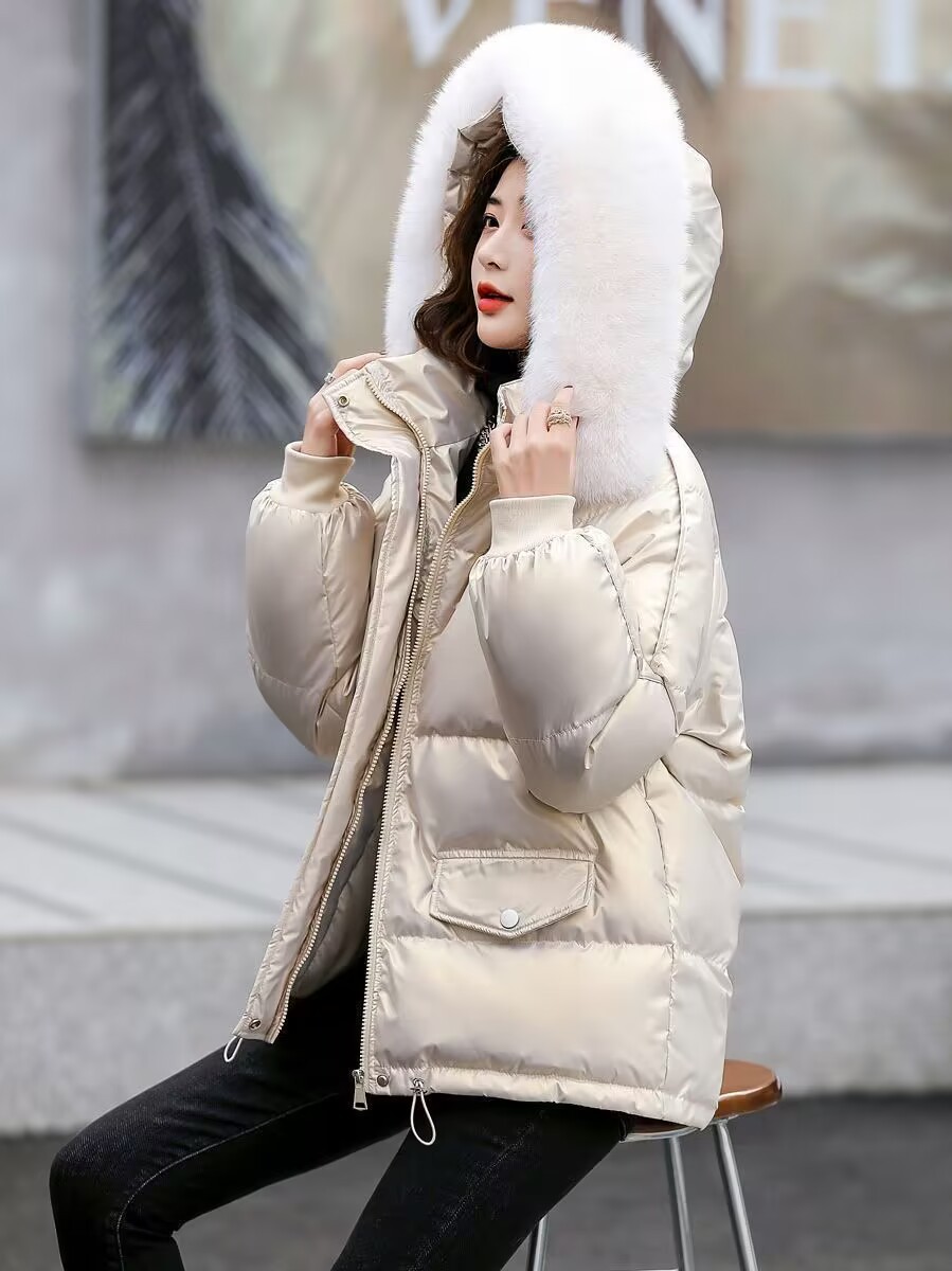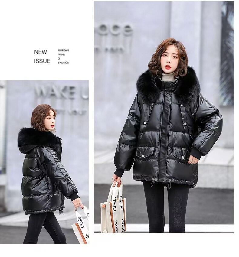 Пуховик яркий женский короткий корейский модный большой меховой воротник без стирки, свободная одежда для хлеба, взрыв, белое толстое пальто на утином пуху