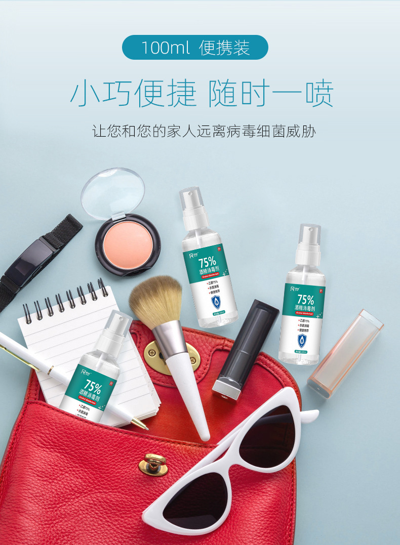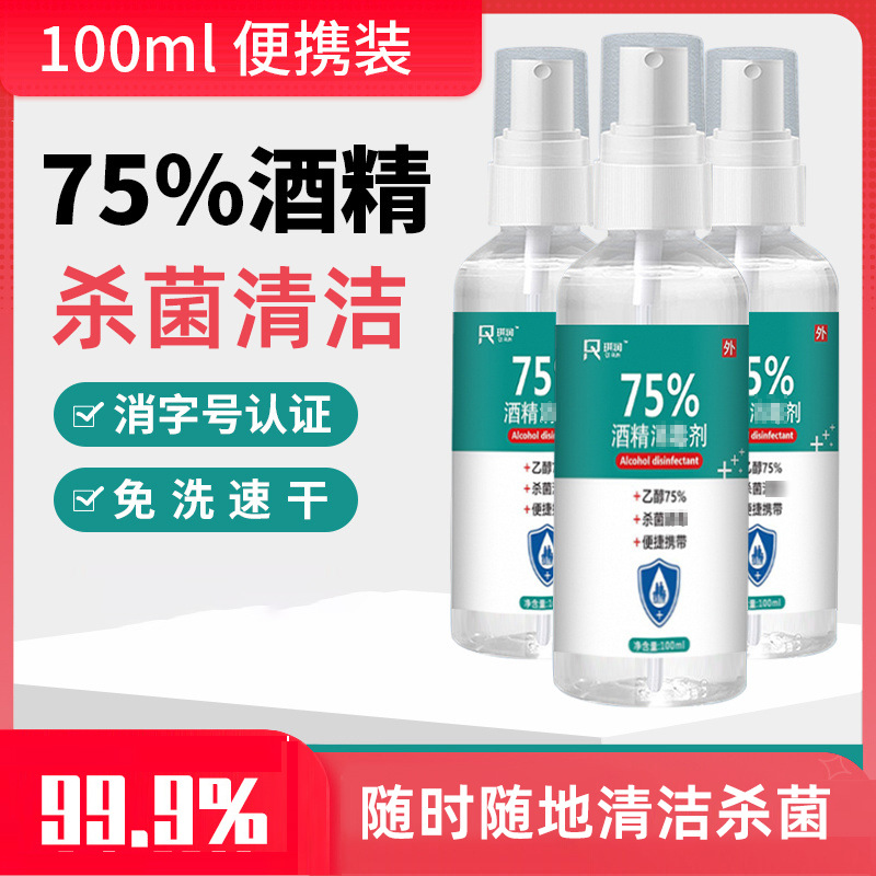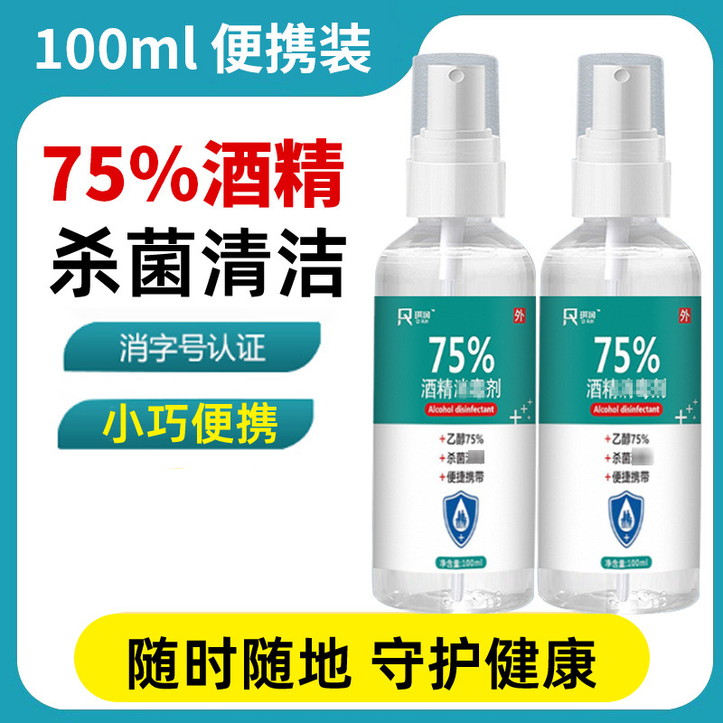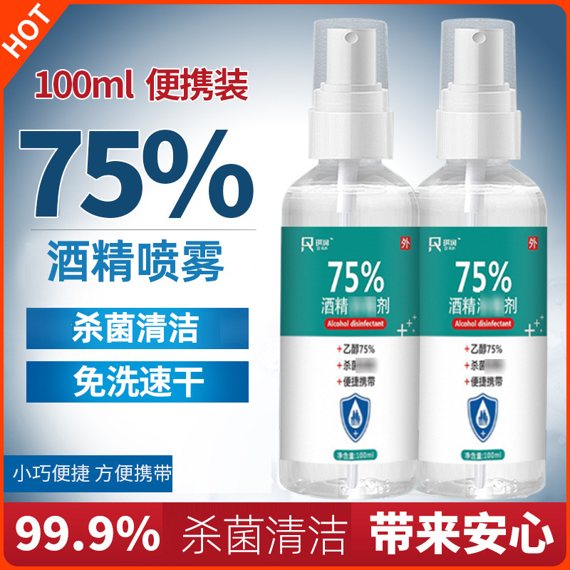Спрей с 75% спиртом, портативный, 100 мл, для студентов, уборки дома, путешествий, стерилизации, ухода за ранами, без смывания, быстросохнущий, для использования в дороге