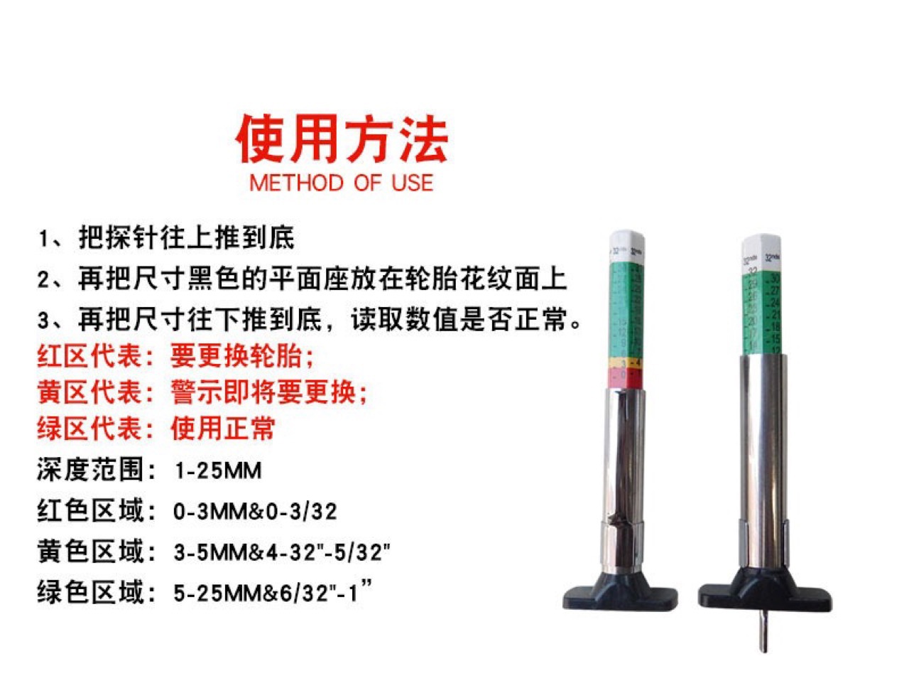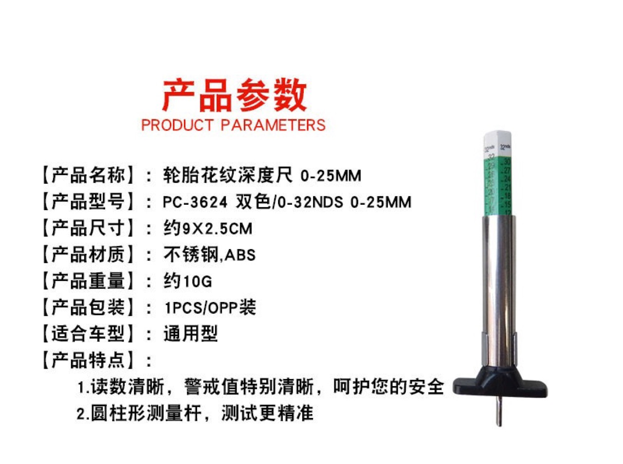 Ручка протектора 0-25 мм датчик глубины 32nds датчик протектора шины датчик глубины PC-3624 датчик рисунка шины