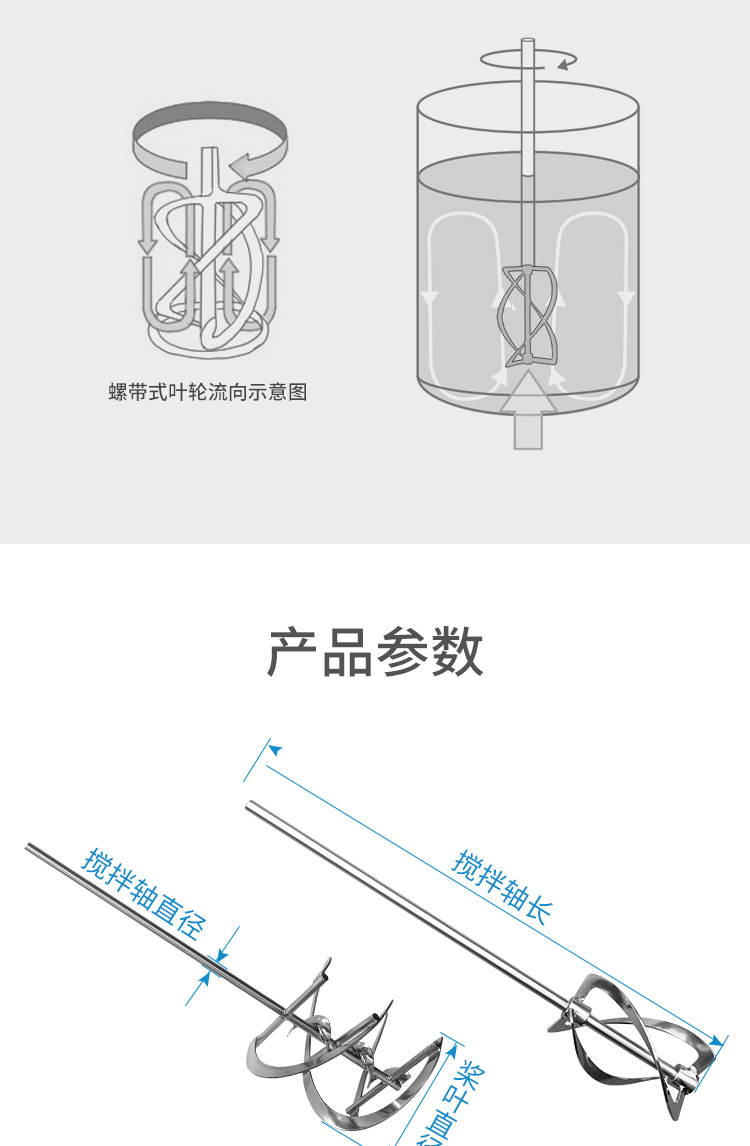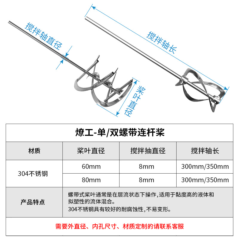 Liao Gong 304 Нержавеющая сталь высокой вязкости дисперсионное весло лезвие спиральный ремень лабораторный перемешивающий стержень весло IKA Precision