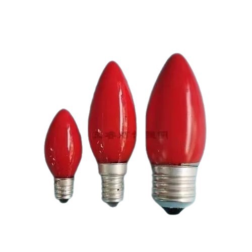 C7-E12 маленькая красная лампа 10 Вт с вольфрамовой нитью накаливания; Прозрачная лампа с вольфрамовой нитью накаливания C7E12 мощностью 10 Вт; C26-E12 средняя красная лампа 10 Вт с вольфрамовой нитью накаливания; Лампа с вольфрамовой нитью накаливания C28-E14 красная 10 Вт; Лампа с вольфрамовой нитью накаливания C35-E27 красная 10 Вт