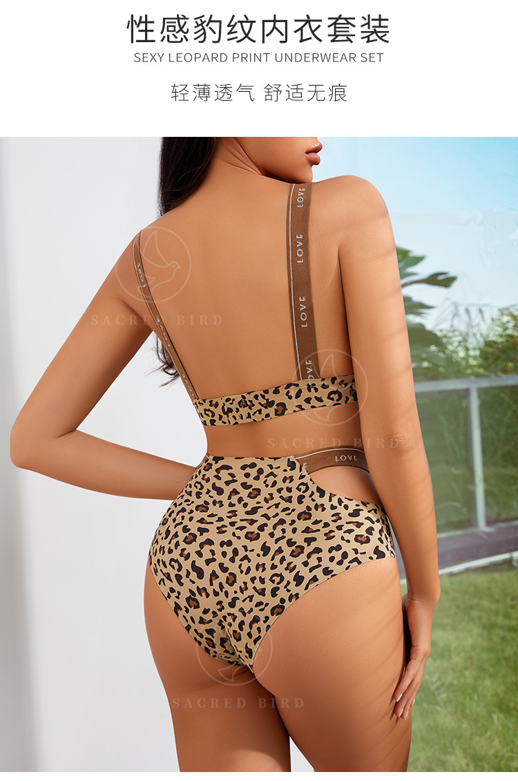 Сексуальный Леопардовый пряный костюм для девочек, европейский и американский нижнее белье больших размеров, с буквами, плечевой ремень, бесшовный ледяной шелк, женский бюстгальтер без стального кольца