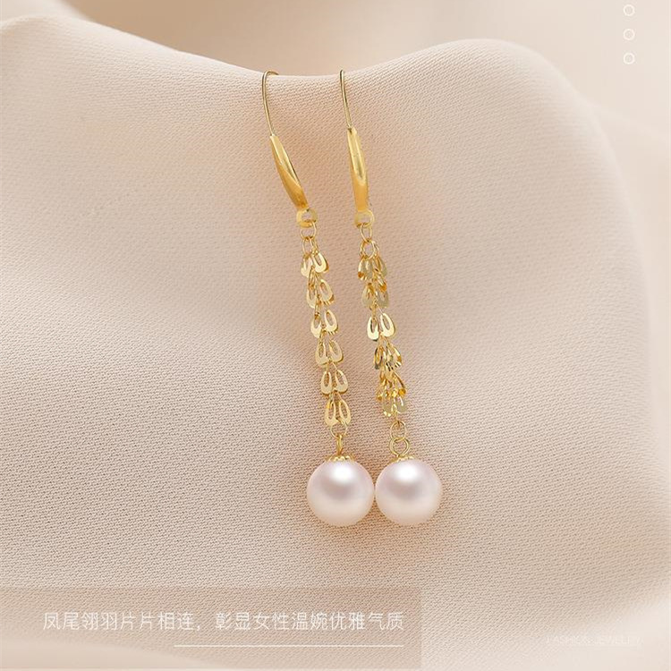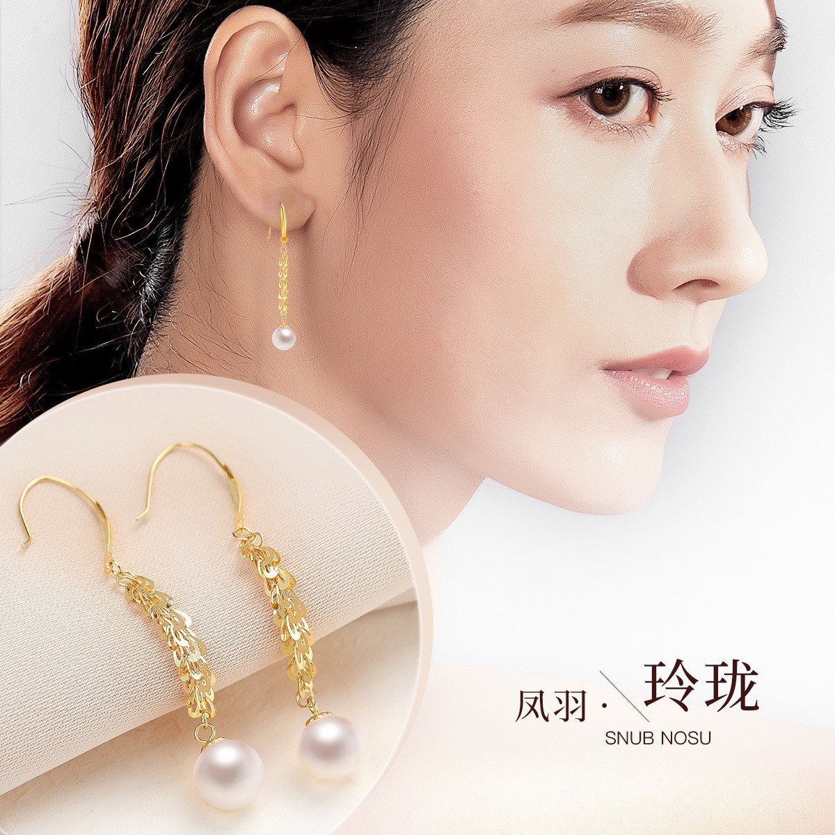 Серьги из золота 18 карат с жемчугом в форме хвоста феникса, серьги из золота au750, серьги с натуральными пресноводными жемчужинами, универсальные серьги из розового золота